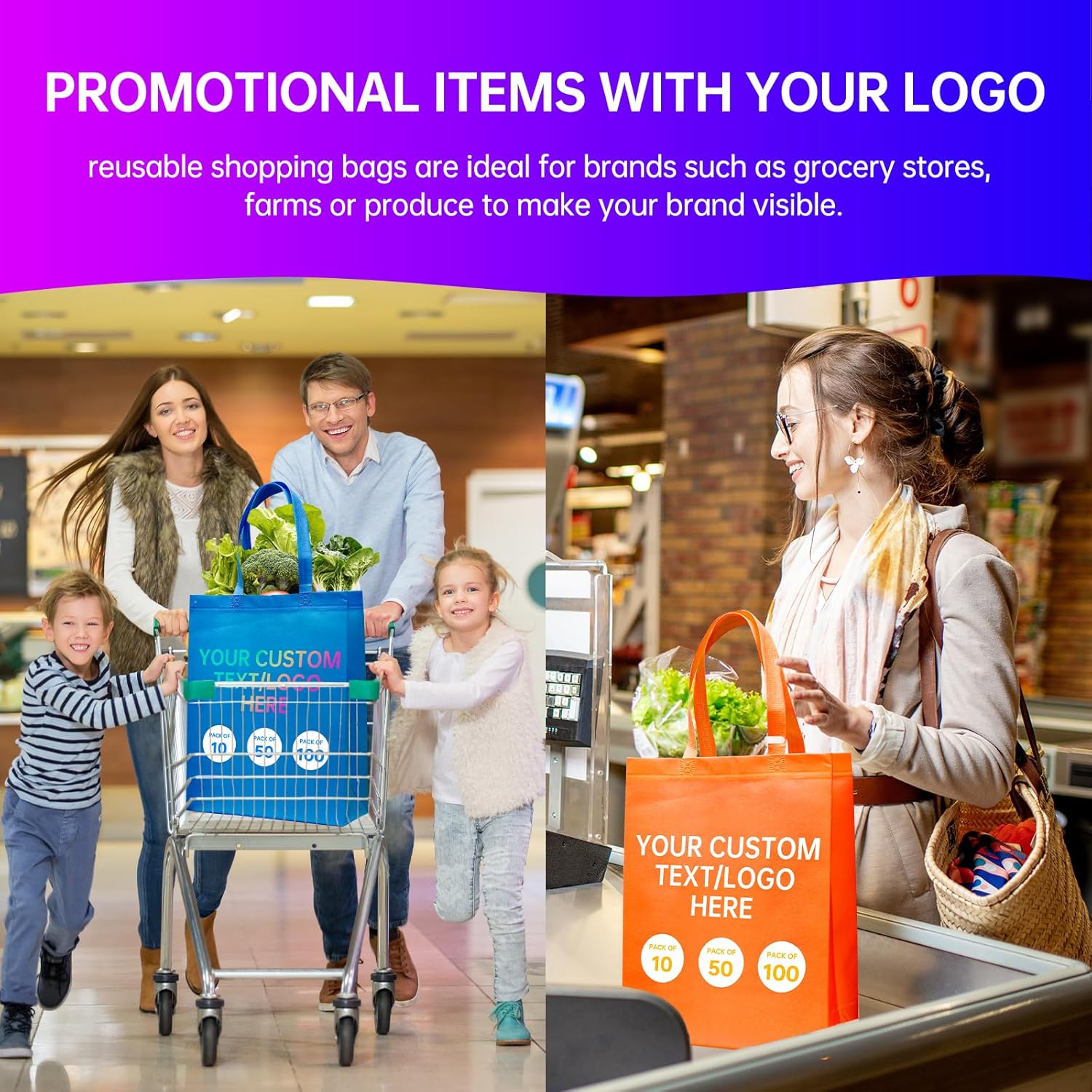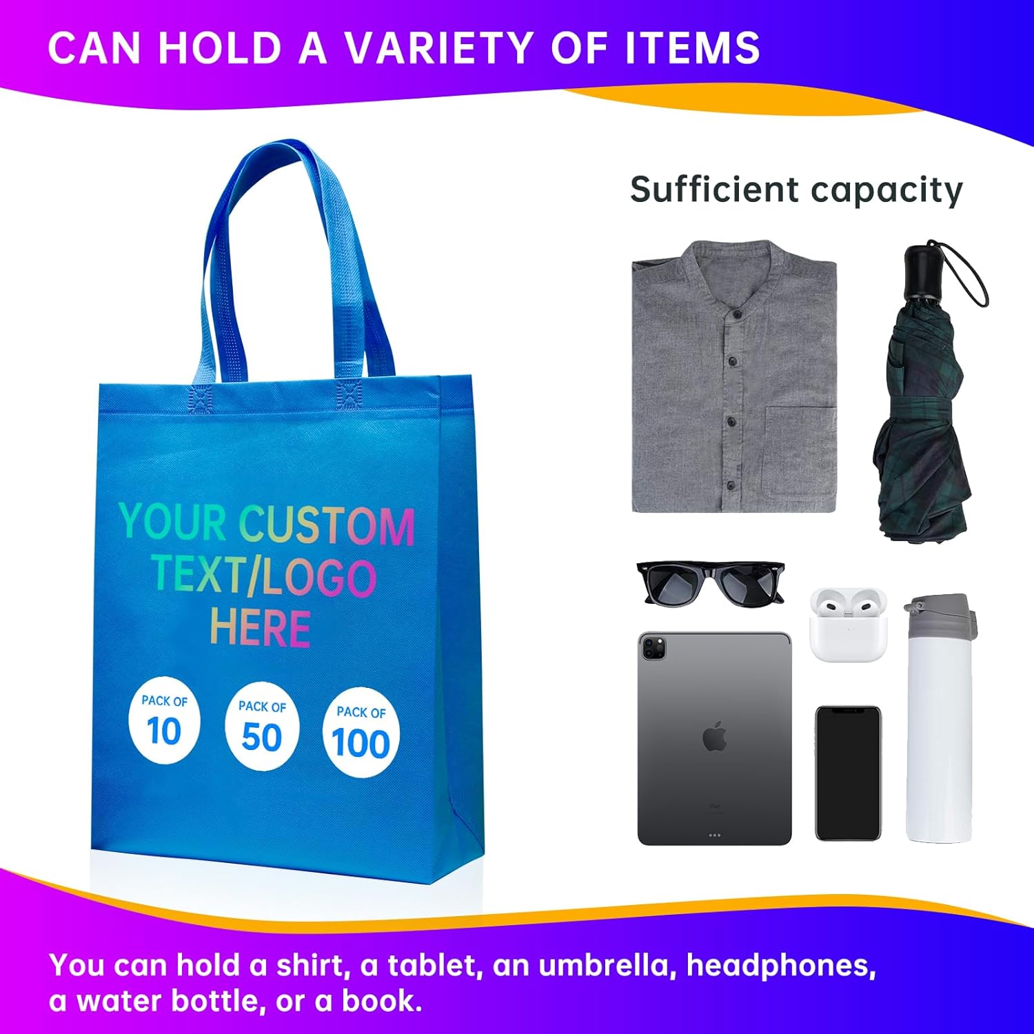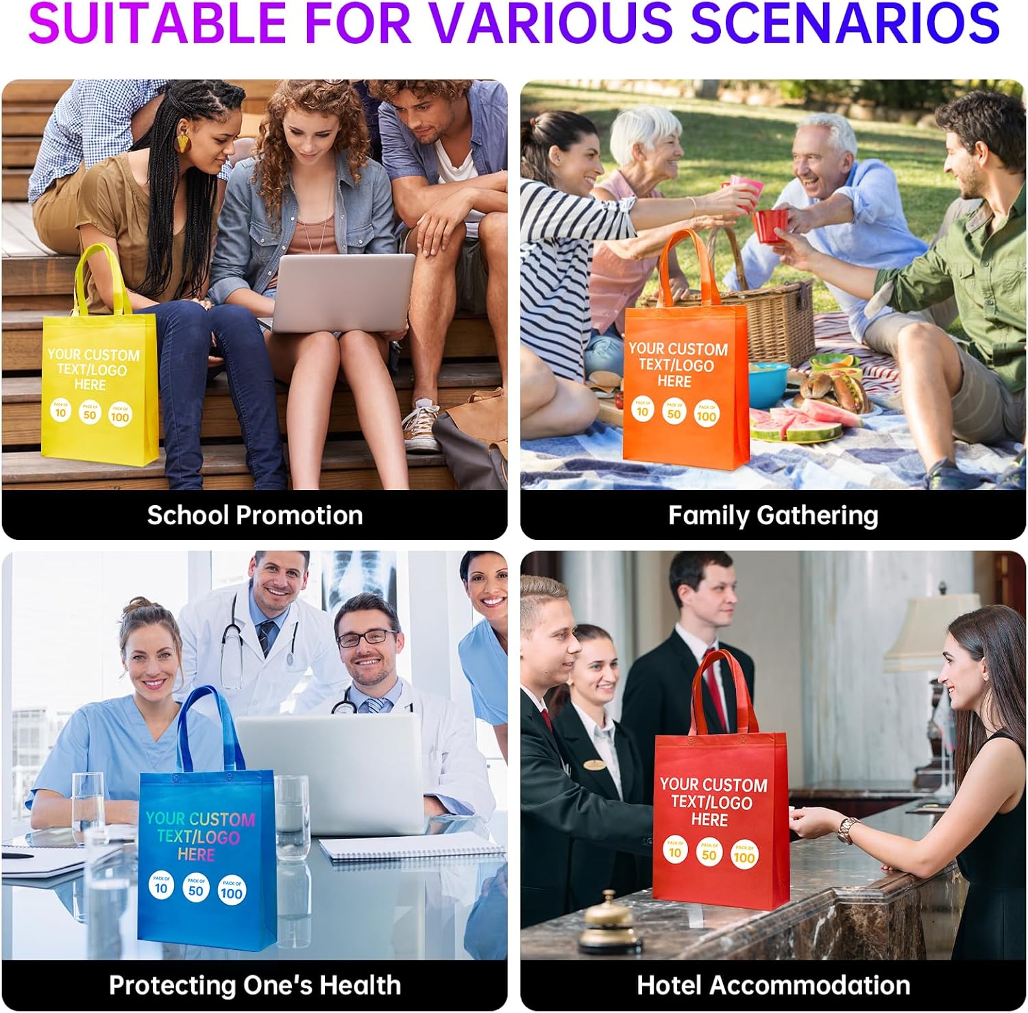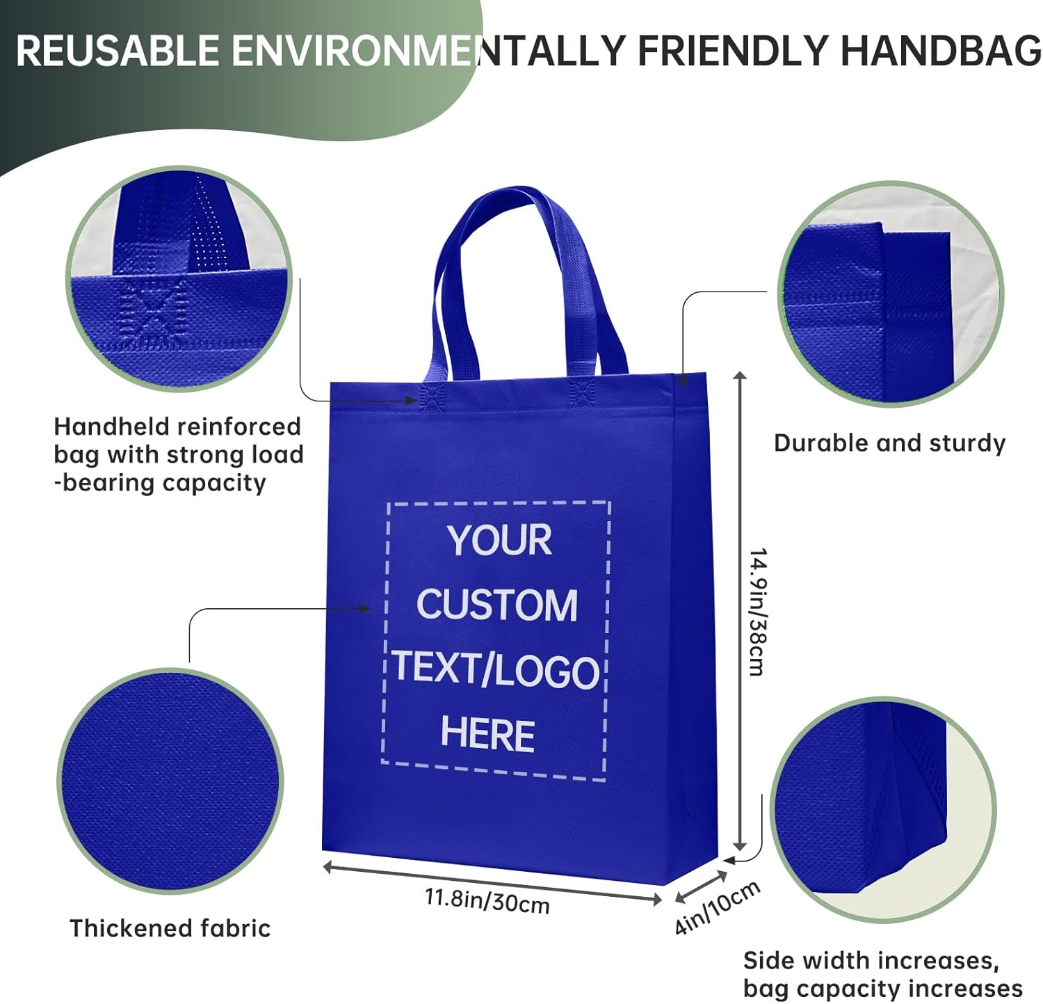 Custom Tote Bags10/50/100Pack,promotional items with your logo,Personalized Shopping Bags,15 * 12 * 4Inch reusable tote bags with handles