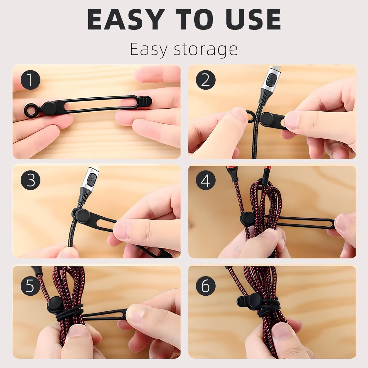 Data Cable Organizer, 2025 New Elastic Silicone Cable Straps Cord Organizer, Reusable Cable Ties Wire Organizer for Bundling and Fastening Earphone, Phone Charger (6 Pcs)