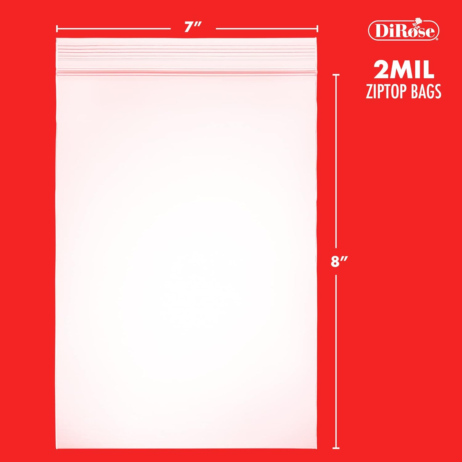 Dirose 7″ x 8″ Clear Reclosable Poly Bags – Pack of 1000, 2 Mil Thickness – Resealable Plastic Zip Bags for Snacks, Hardware, Arts & Crafts, and Storage