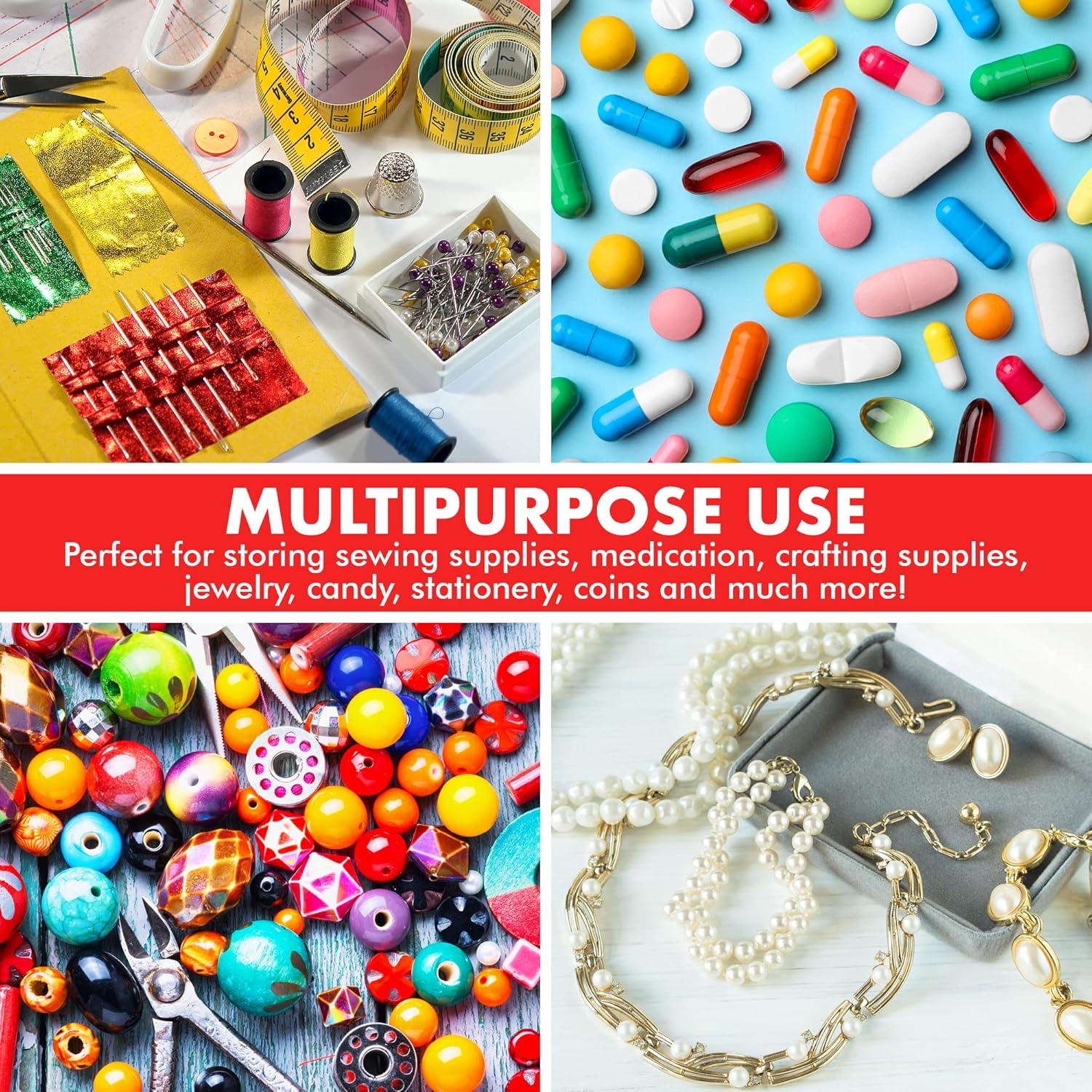 9 MIL THICK – Durable 2 mil thick walled clear poly zip bags. Storage for a wide variety of jewelry, pills, arts & crafts supplies, and more.