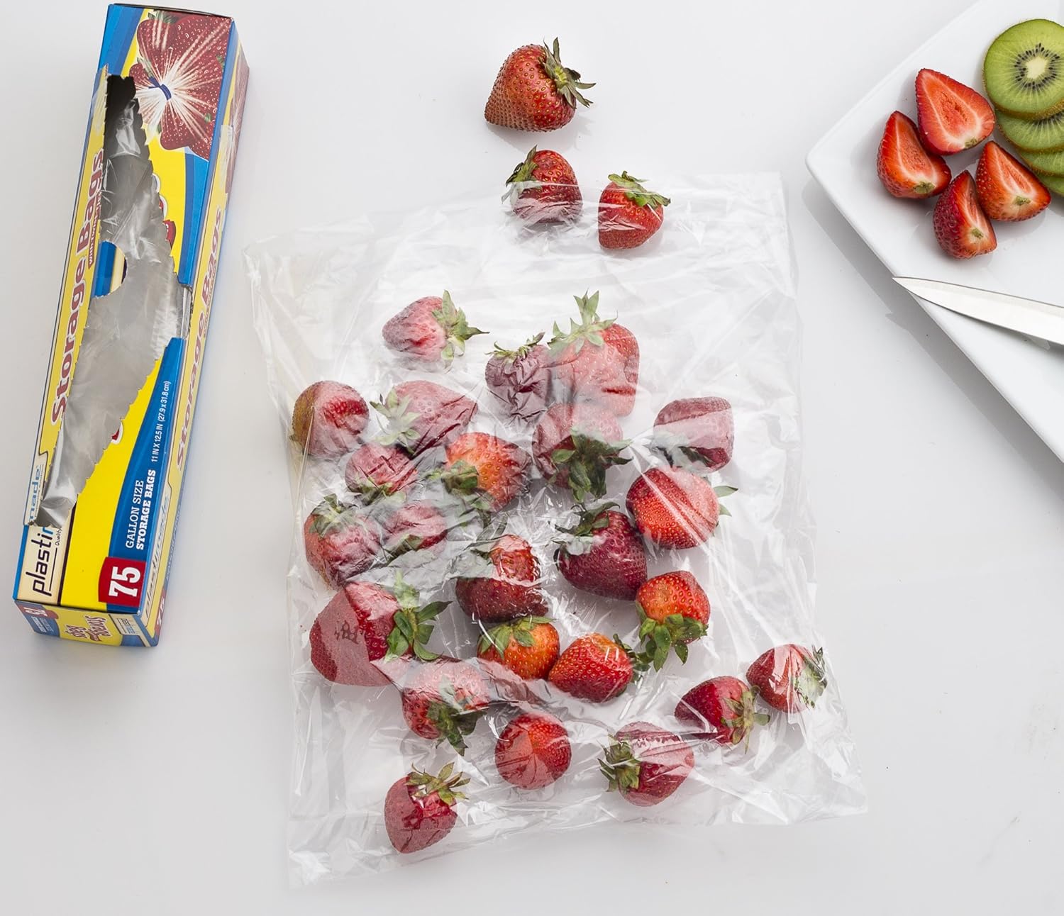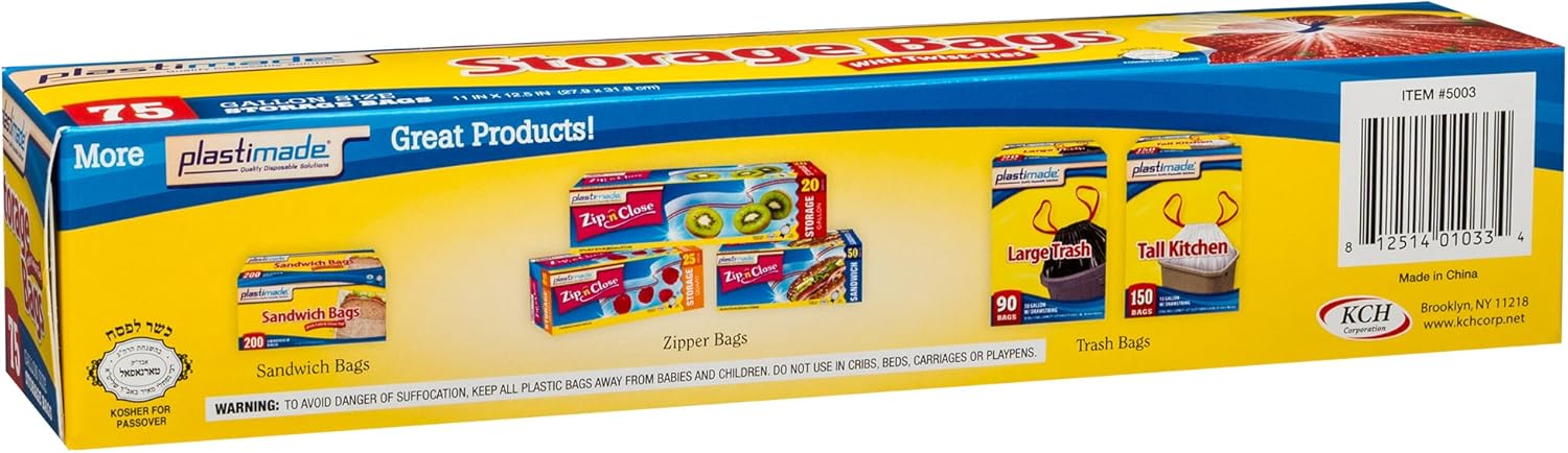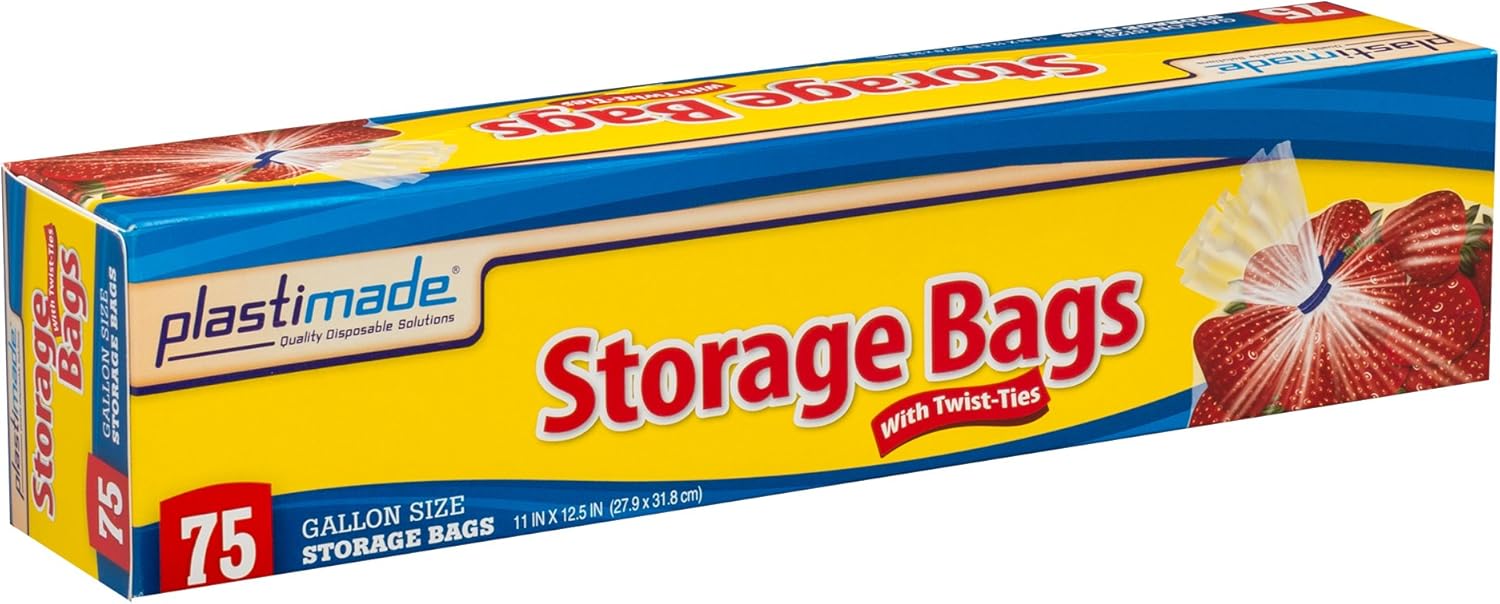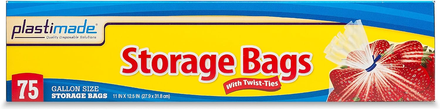 Plastimade Twist & Tie Storage Bags Gallon Size 75 Storage Bags Per Box. Safe For Both Freezer And Refrigerator Use, Pliable Plastic Helps Prevent Freezer Burn. High Quality Clear Bags Good For Storage, Freezing, Sandwiches Snack Etc. Includes Free Ties To Close The Bags & Keep Your Food Fresh