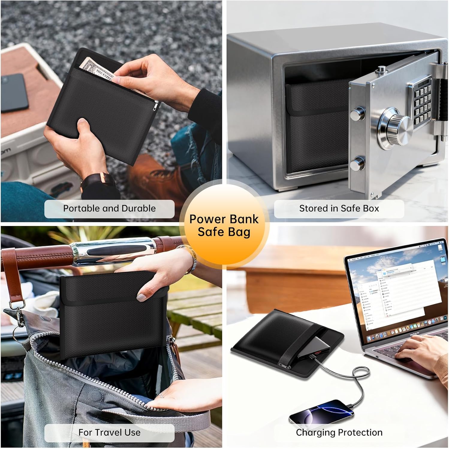 Home Office Travel Safe: When you’re traveling, the risk of a power bank exploding while charging cannot be overlooked. This is where our fireproof bag comes into play. If the power bank ignites or explodes inside the bag, its sturdy structure can temporarily contain the flames, high temperatures—ensuring optimal protection for your charging safety. Nothing is completely foolproof, but added protection is always a good idea