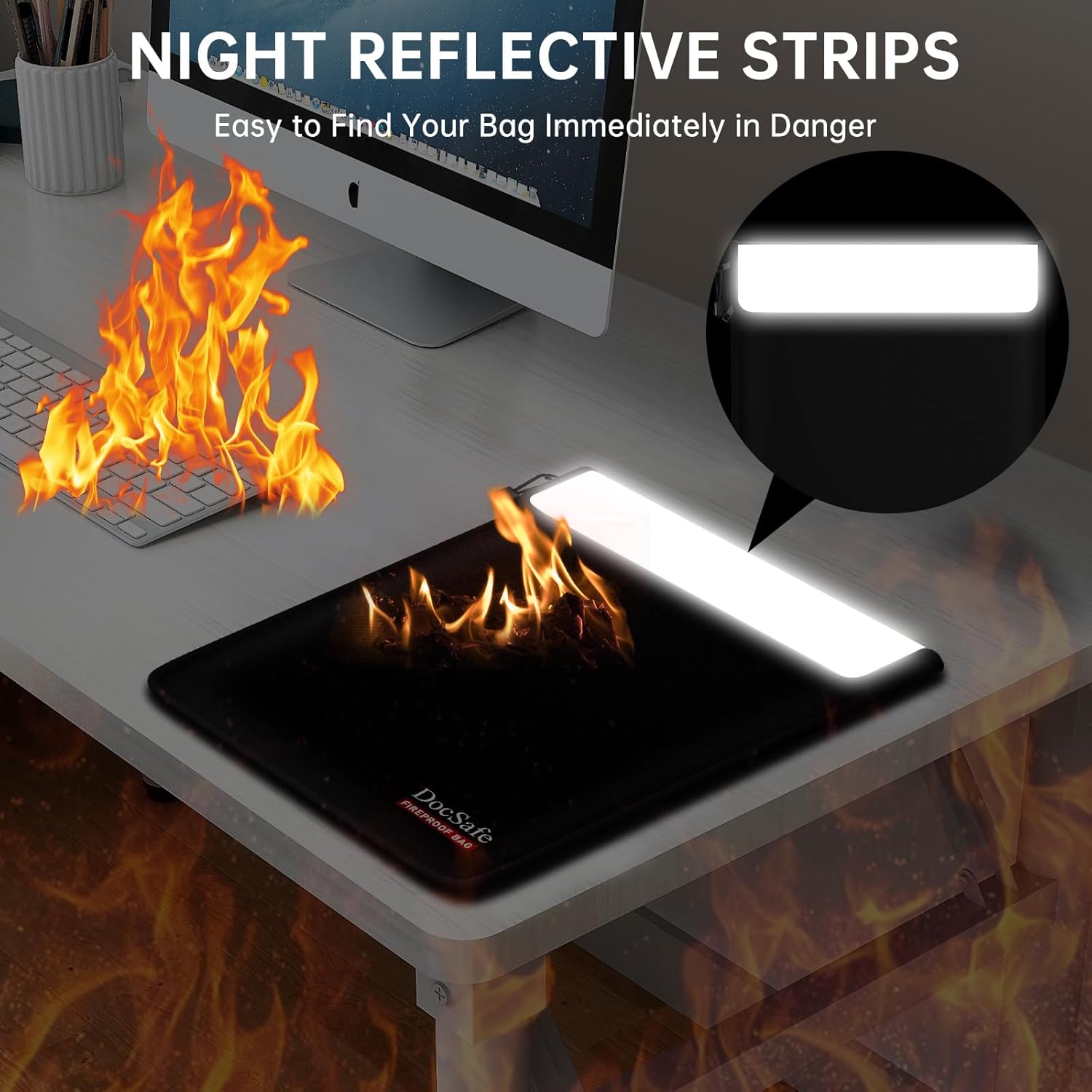 Durable, Foldable Portable: The sealed zipper is water-resistant, capable of withstanding direct jets of water from a fire hose. The combination of a hook-and-loop flap and a zipper provides dual protection. The reflective strip ensures you can quickly locate the fireproof document bag even in total darkness. In a fire, every second counts. Our goal is to help you swiftly find and grab your most vital belongings in a crisis