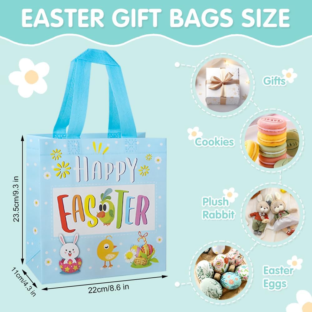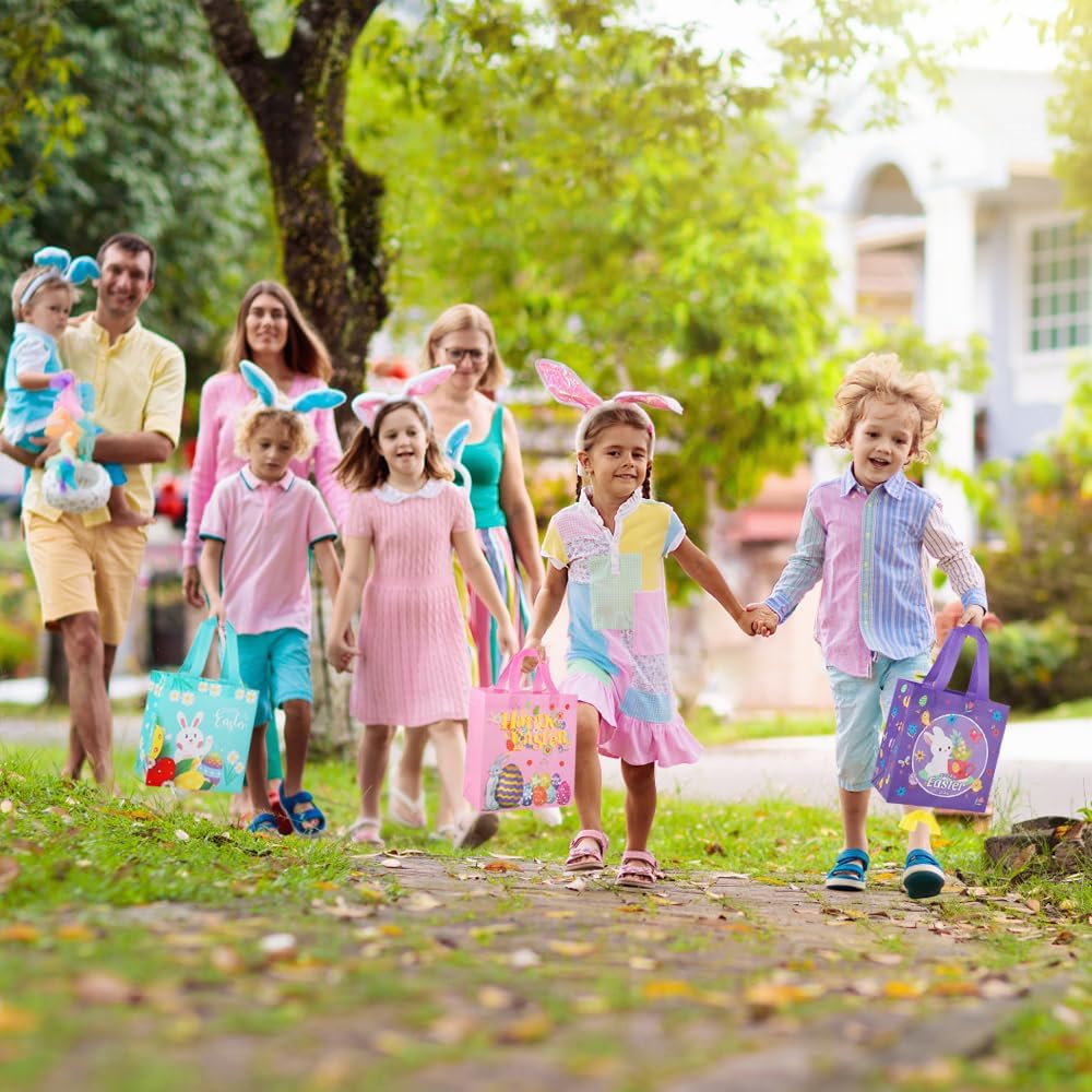 Easter Gift Bags ,6pcs Easter Tote Bags with Handles,Happy Easter Gift Bags for Kids, Non-Woven Reusable Easter Goodie Bags,Egg Hunt Game Easter Holiday Party Supplies