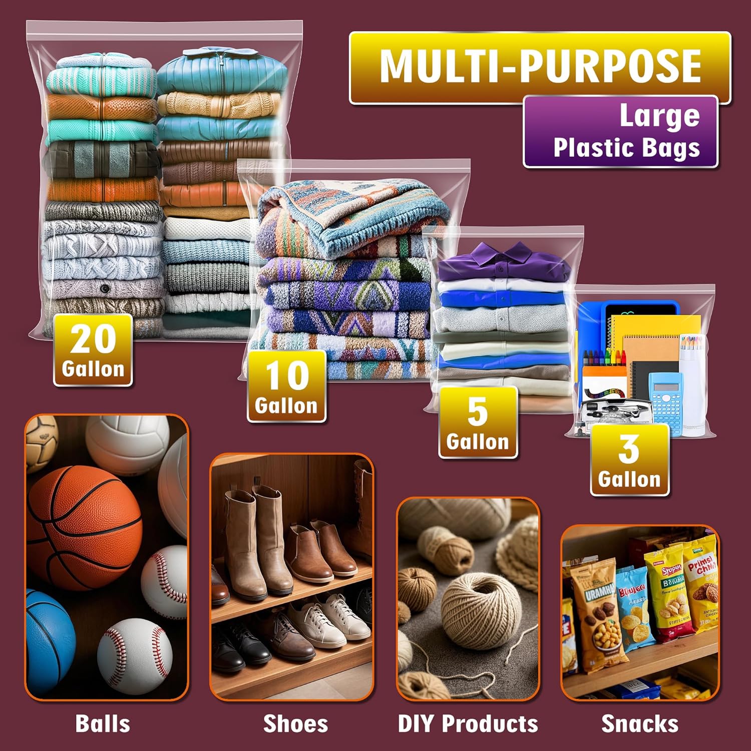 Upgrade Your Storage with 5 Gallon Bags for Every Space: Need a solution for tidying up your child’s toys or seeking durable storage bags? These versatile, clear, resealable plastic bags are also ideal for organizing Christmas ornaments and seasonal decorations. Made from 2mil thick material, these 18″ x 24″ bags provide ample room for all your storage needs