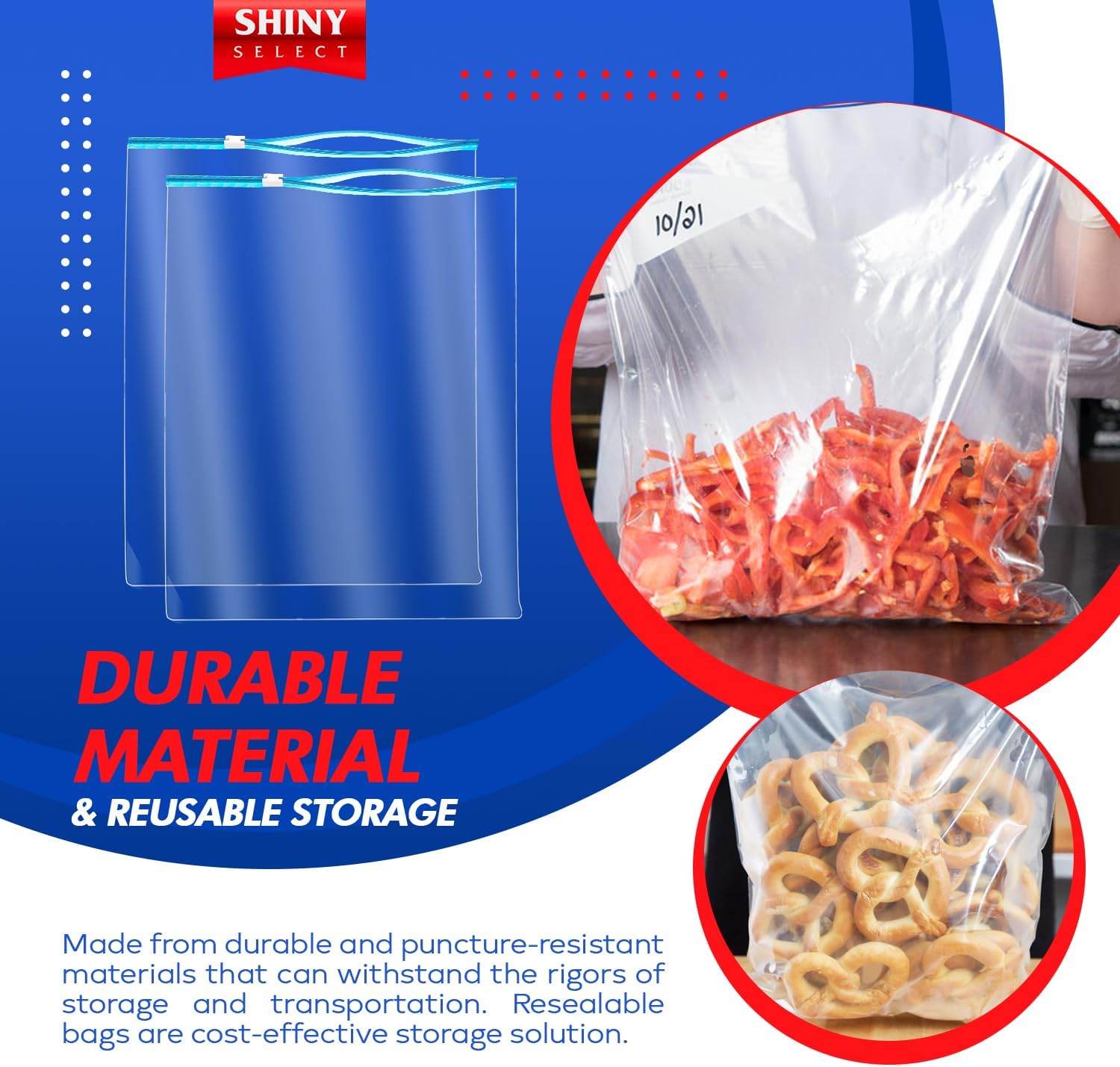 Food-Safe and Resilient – Great as reusable storage bags for food, you can secure leftovers, marinate meats, brine turkey, keep fruits and vegetables fresh, baking essentials shortage, bread, snacks, pasta, any kitchen item storage or sort bulk goods with ease. These bags guard your food from moisture and leaks, ensuring freshness.
