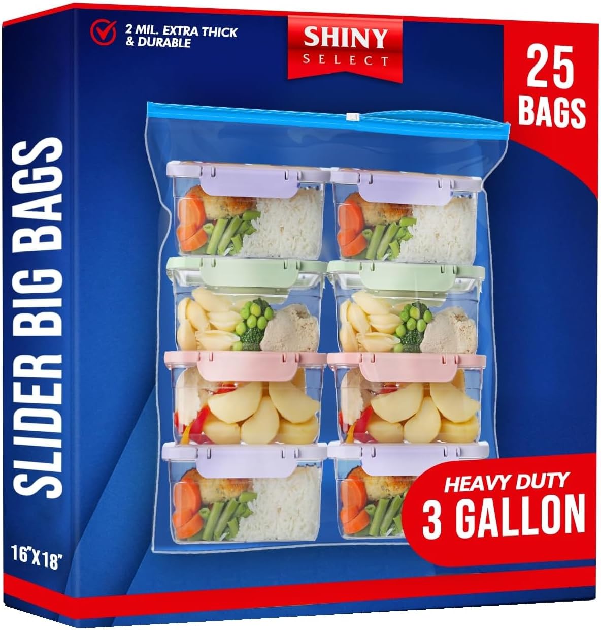 Extra Large Jumbo Size 3 Gallon Slider Storage Bags, 25 Bigger Resealable Extra Large Clear Plastic, 2 Mil Thick for Moving, Food Meal Preparation, Clothing, Toys, Shoes, Toiletries, Snacks
