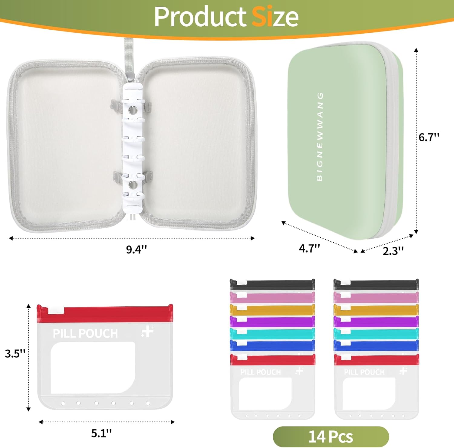 Extra Large Weekly Pill Organizer Set, Reusable Pill Bags with 14 Coded Pouches for Home and Travel, 7 Day with AM PM Large Storage Portable Medicine Pill Case for Fish Oils, Vitamins