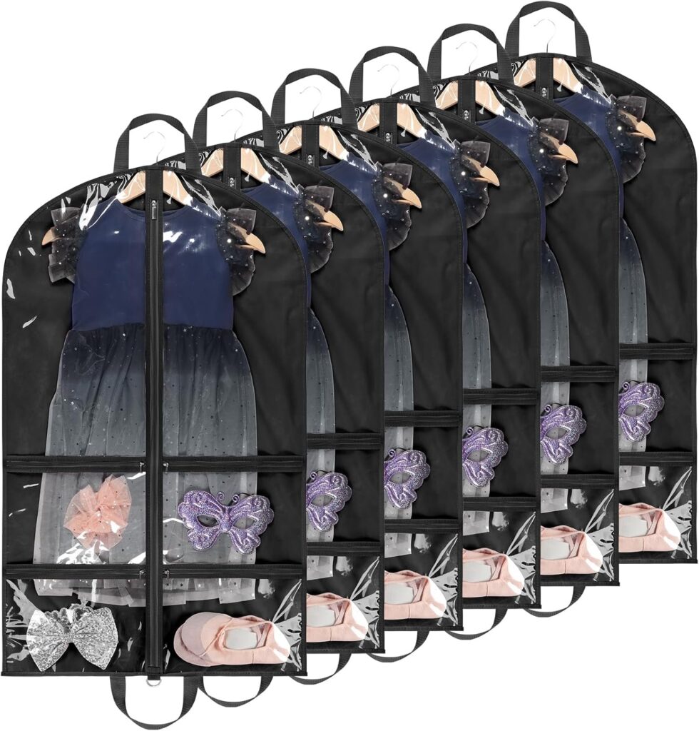 Extra Long Dress Garment Bags 60in Clear Hanging Lightweight Breathable Dust Proof Cover with Study Full Zipper for Storage Clothes and Travel Pack of 6