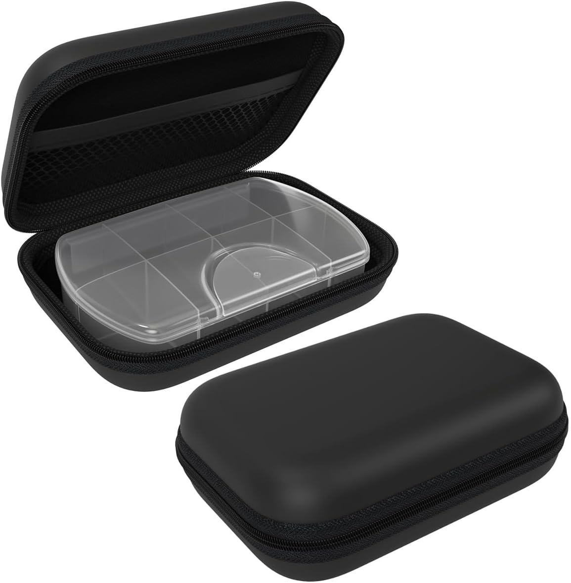 EZY DOSE Hard Sided Pocket Pharmacy Pill Case, Features Zippered Pouch, Easy to Use Design, Portable and Perfect for Daily Usage, 8-Comparments, BPA Free, Black