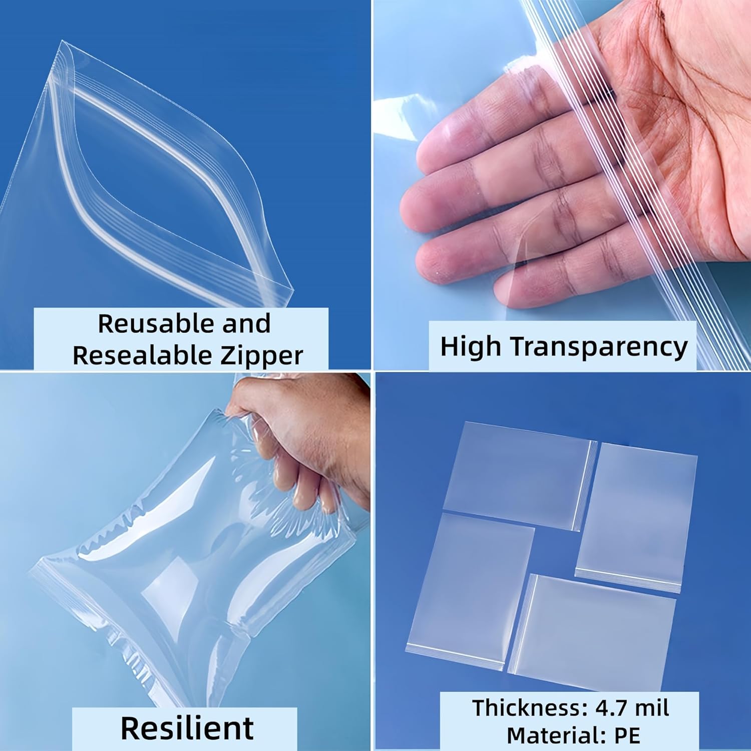 Thicker and Reusable: Thickened craftsmanship makes it more long-lasting than standard packaging bags. It supports multiple resealings and can be reused during organization