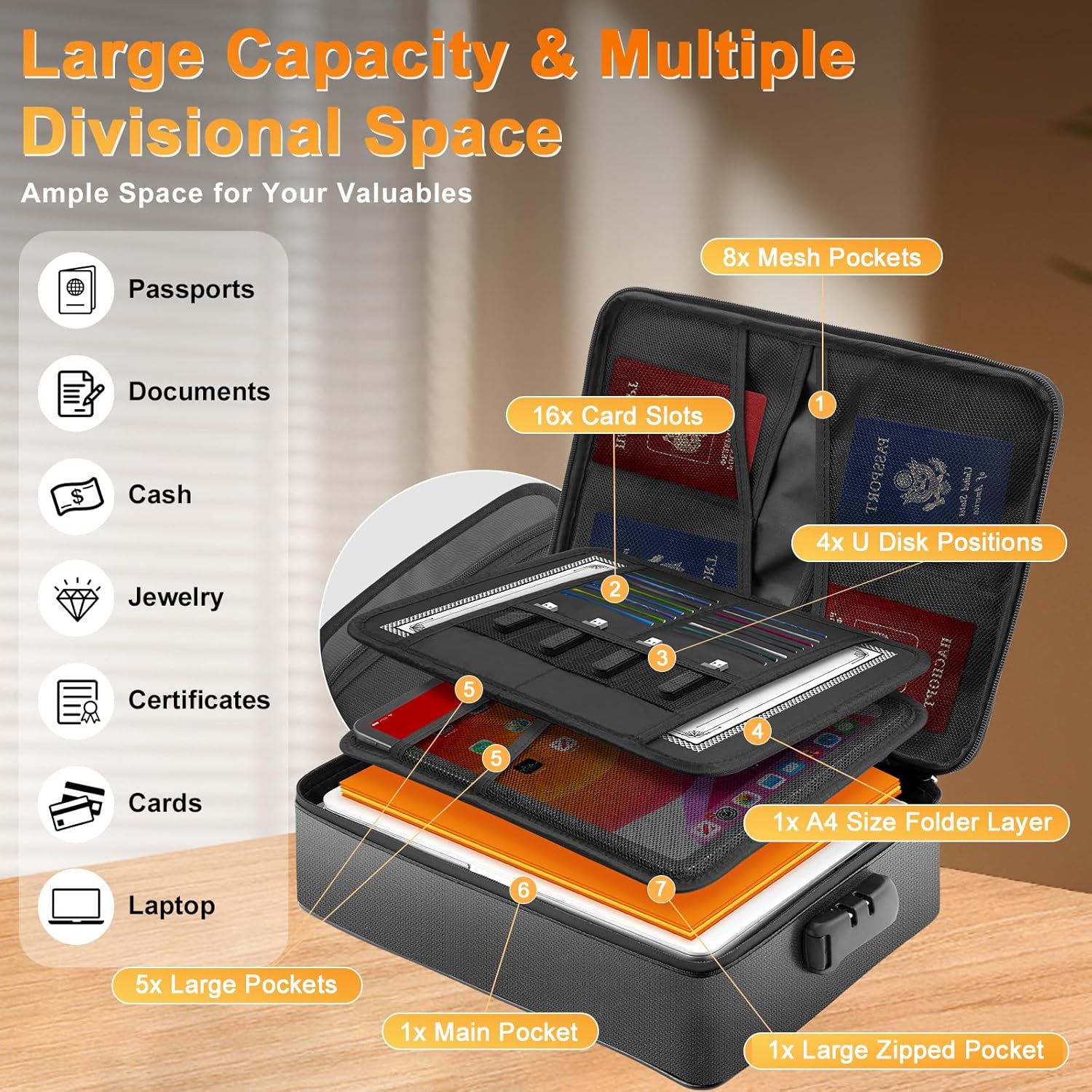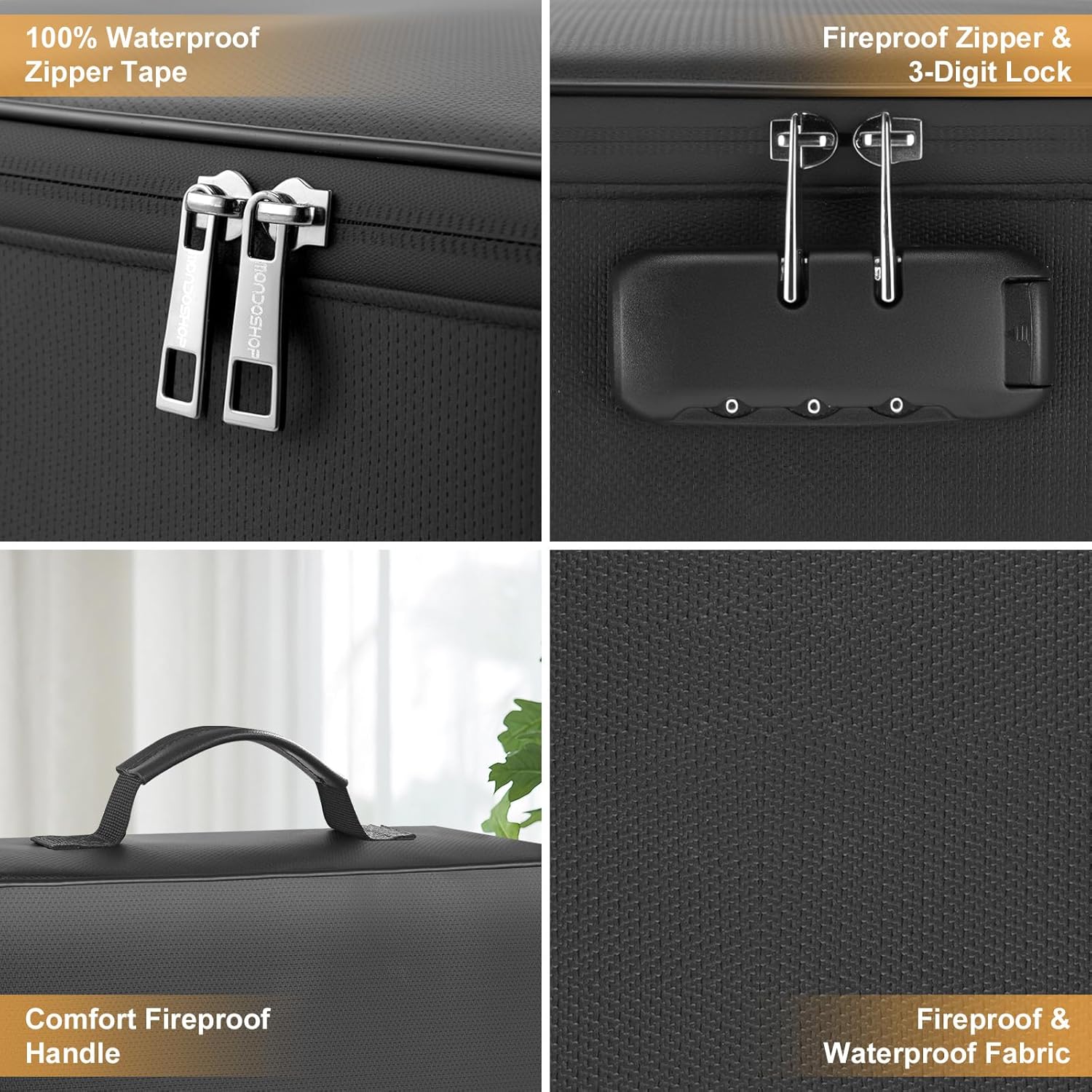 【100% Waterproof Design】In addition to outstanding fire resistance, the document bag feature a 100% waterproof design. The uniquely sealed waterproof zipper provides complete protection against accidental spills, rain exposure, and even flood conditions. This dual-protection mechanism safeguards your documents from both fire and water damage, making it an essential choice for preserving your important files.