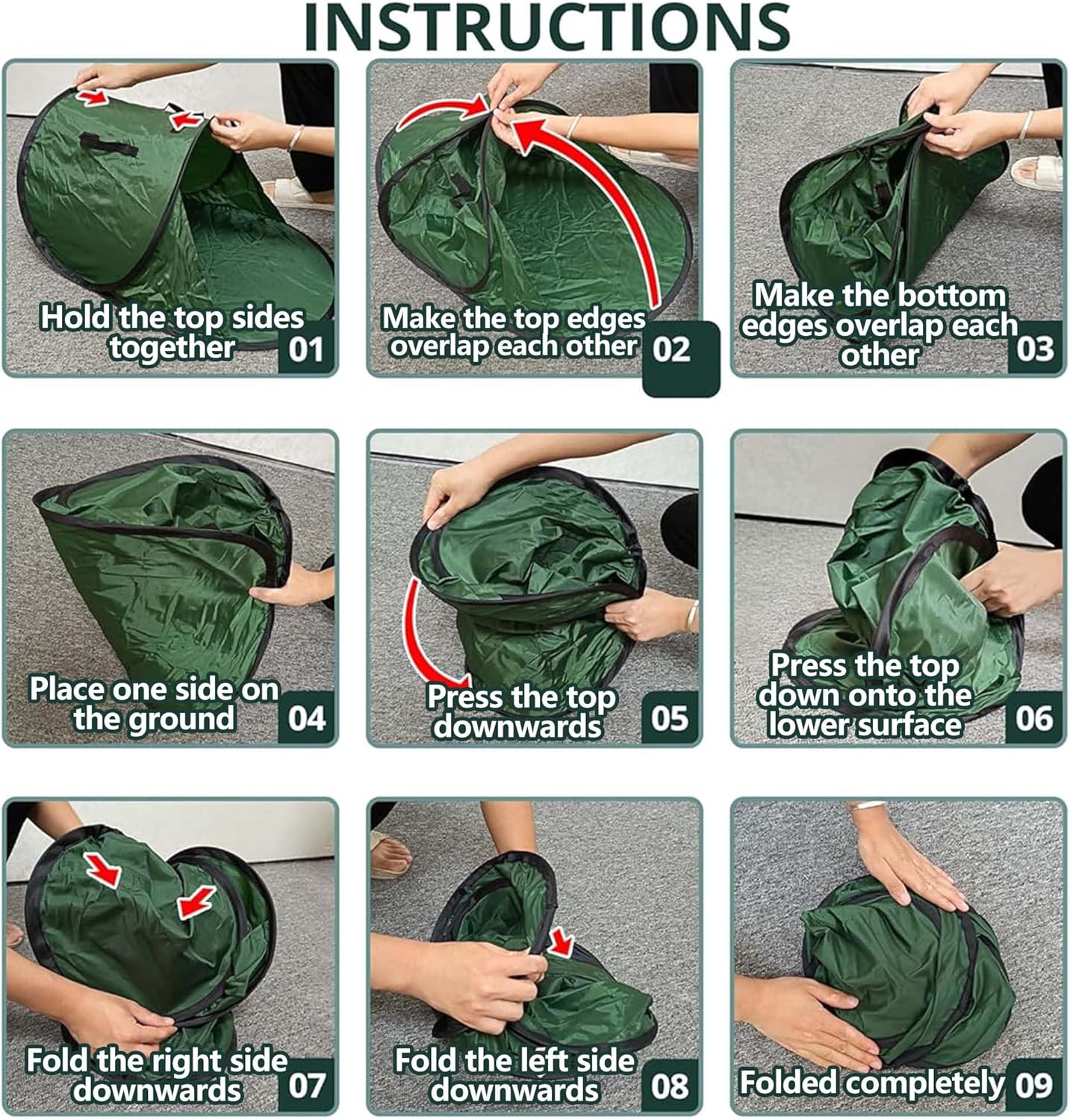 (1)Its innovative pop-up design requires no assembly, opening instantly for immediate use, and is made from tough, tear-resistant fabric to handle fallen leaves.
