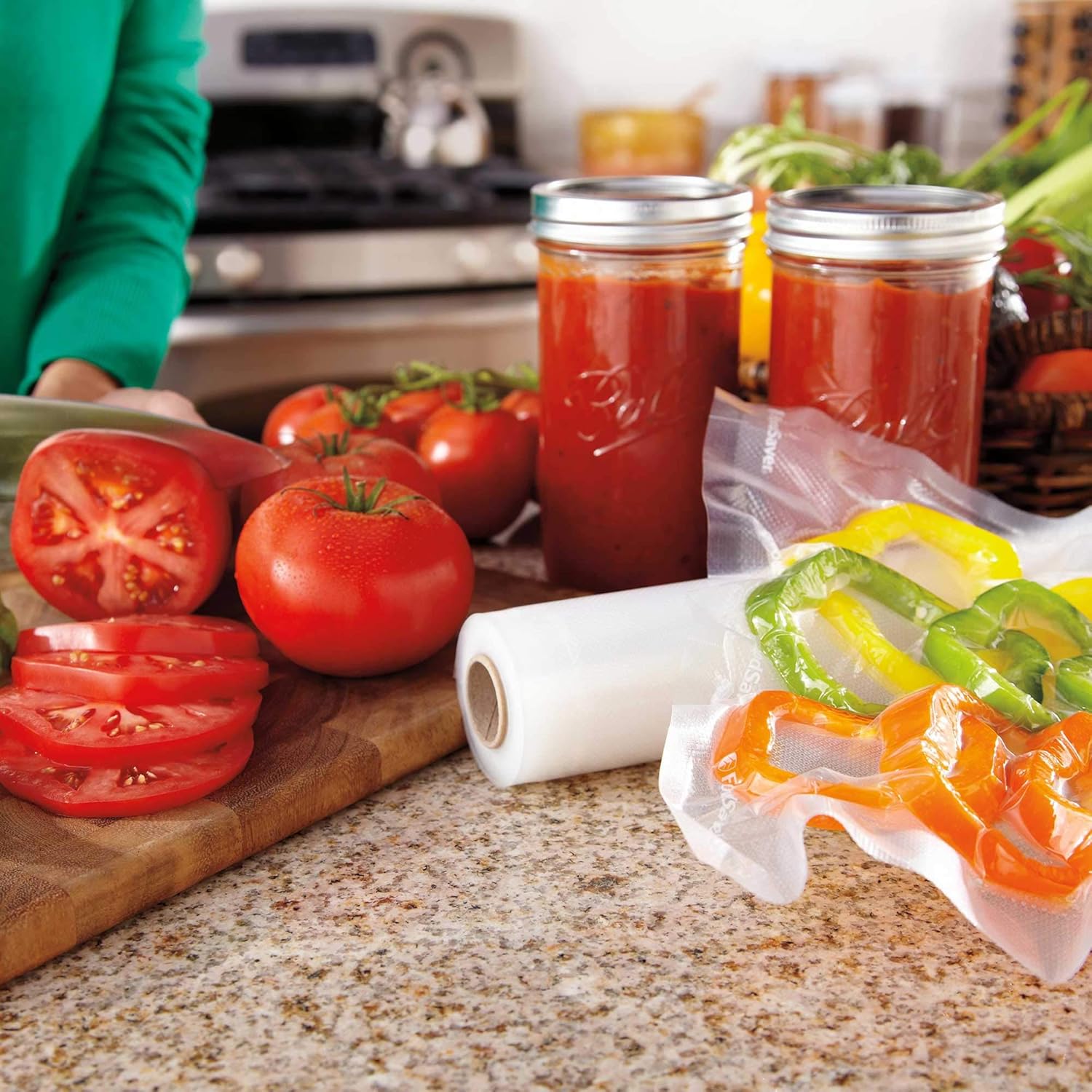 Preserve the freshness of your food with this FoodSaver multipack Vacuum Sealer Bags proven to keep your meal fresh for weeks, not just days. Its BPA free multi-layer design is not only durable but also pliable, forming an airtight barrier around foods to seal freshness and flavors. This superior protection against freezer burn and spoilage is 5 times greater compared to non-vacuum storage methods. Customize the length to fit any food you need to store, allowing for zero waste scenarios. Specifically built for FoodSaver vacuum sealing systems to ensure a secure and airtight seal.