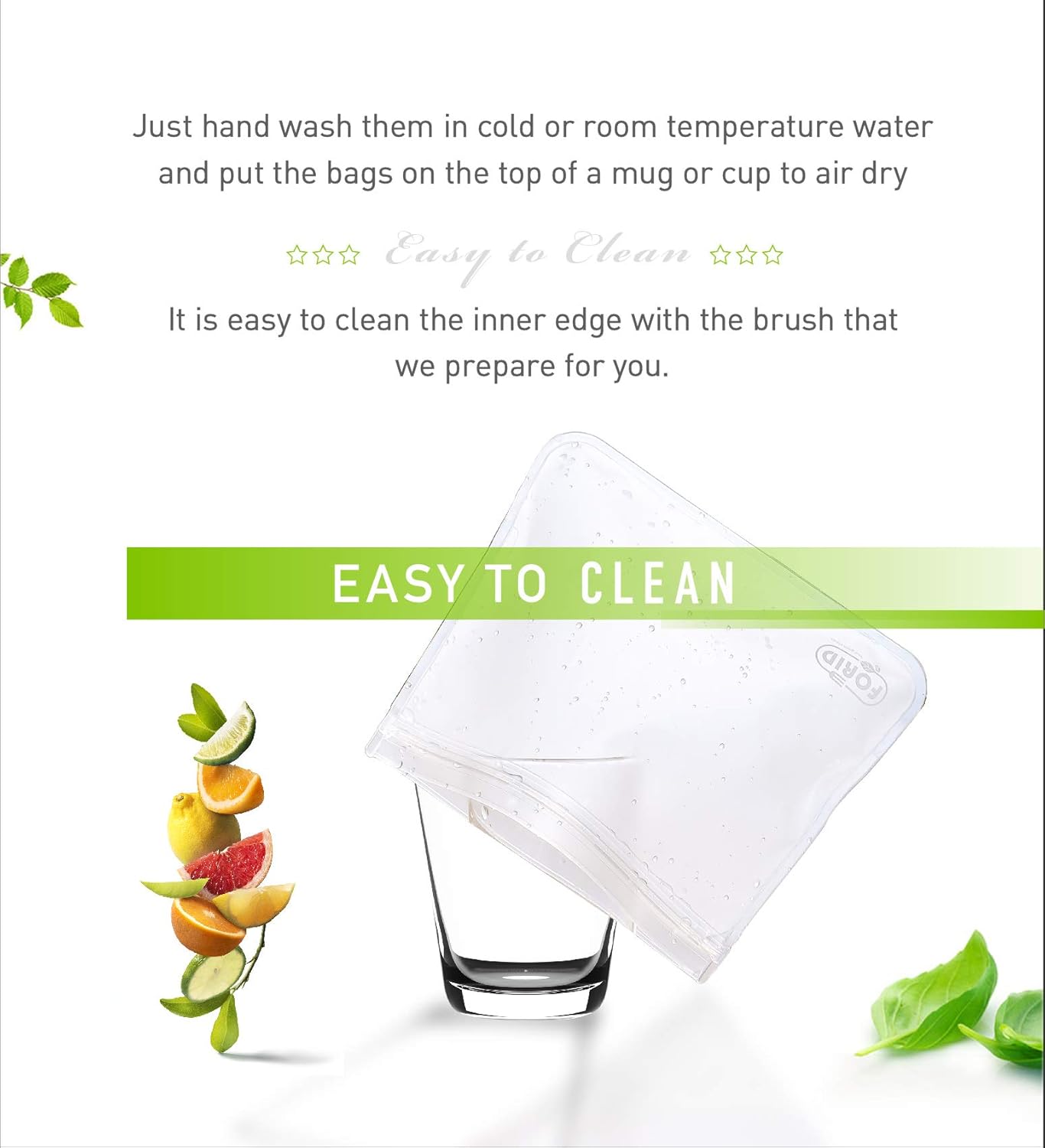 Easy To Clean – We recommend hand wash gallon freezer bags with soap in cold or room temperature water. It is easy to clean the inner edge and get rid of any smell with baking soda and the brush that we prepare for you. Then put them over a rack or cup to air dry. Don’t use hot water, microwave or dishwasher, which will damage the washable Freezer Bags.