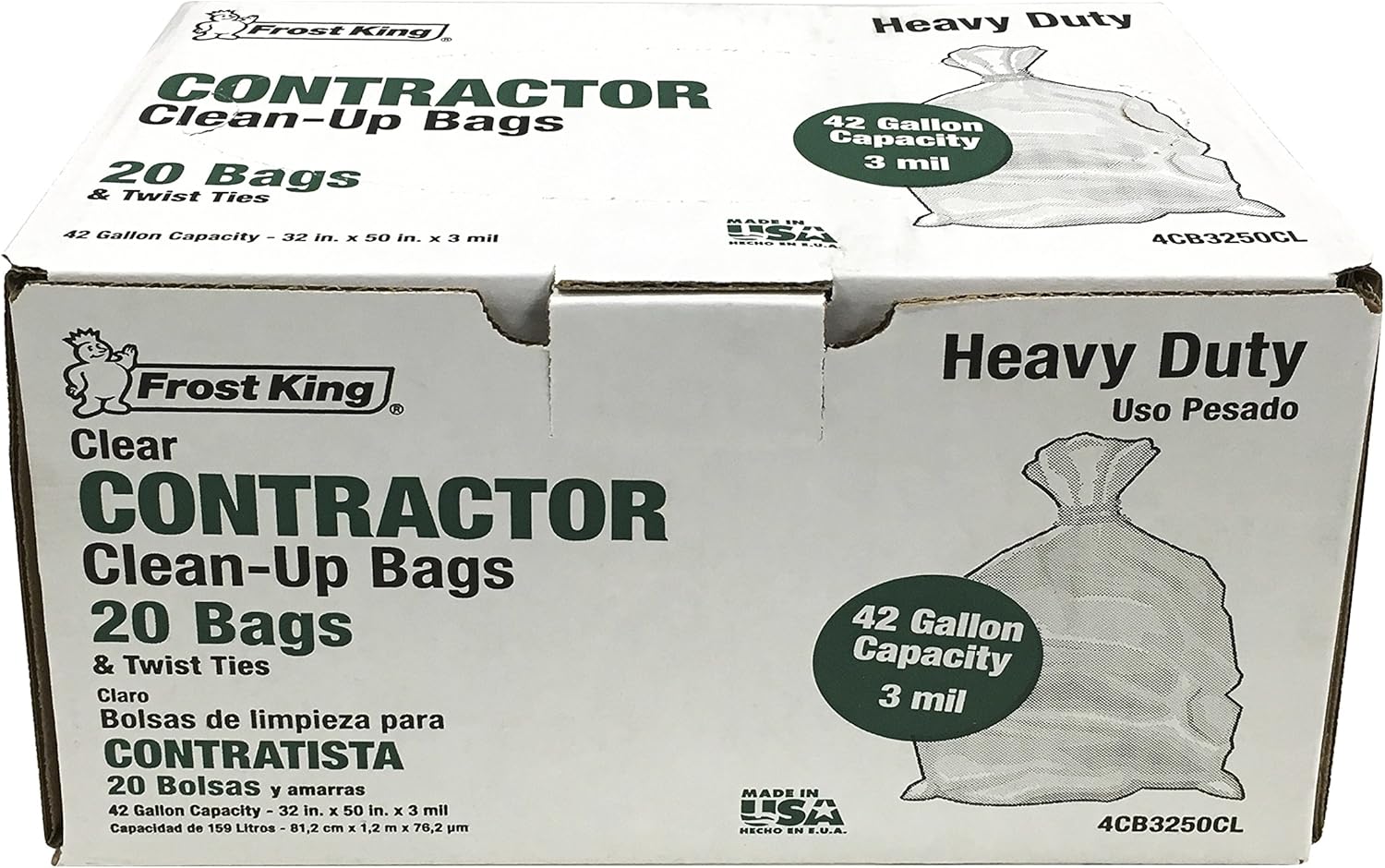 Frost King CB3250 Boxed Heavy Duty Contractor Clean-Up Bags, 32 inch x 50 inch x 3 Mil., 20 Bags, Clear, 1 Count (Pack of 1)