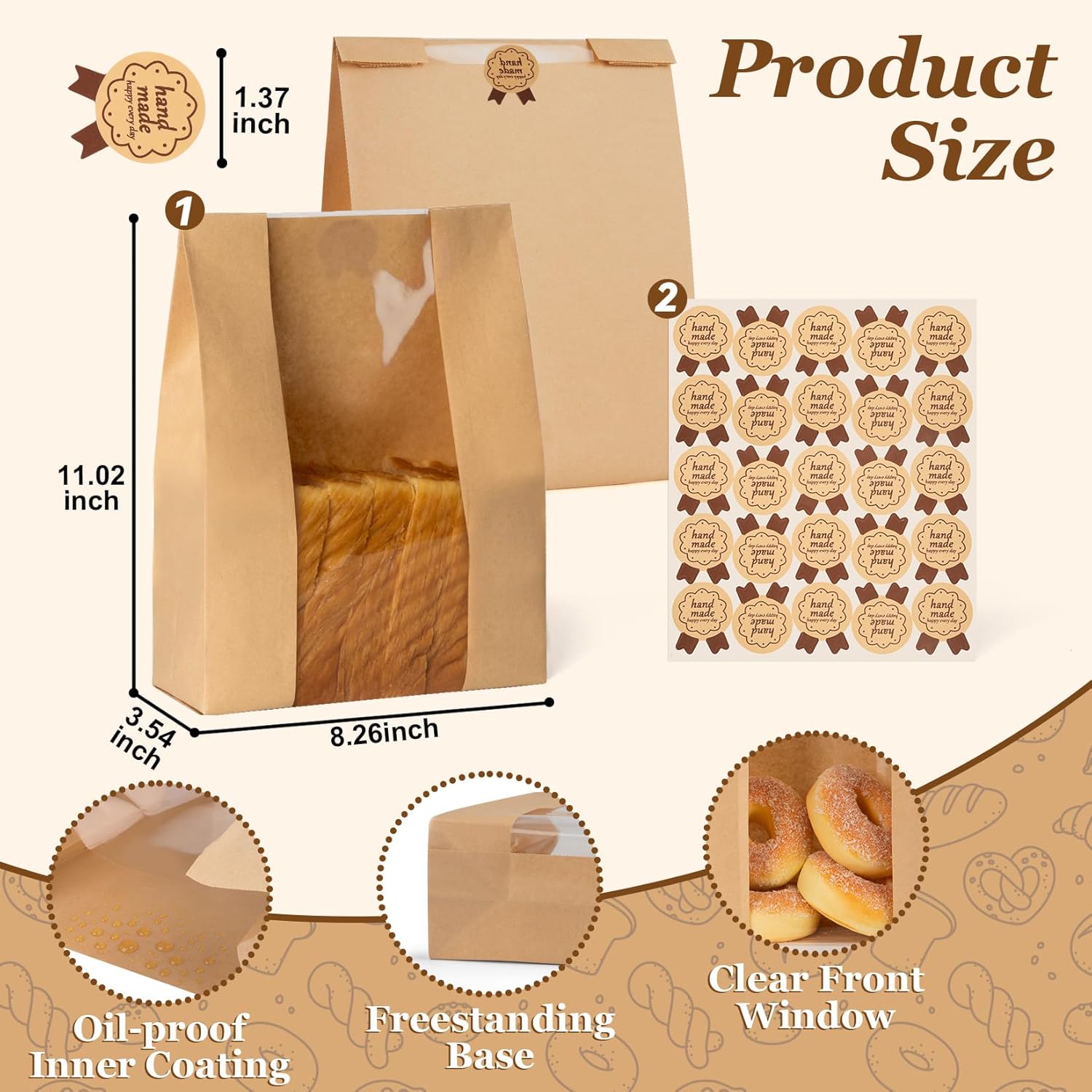 A Better Choice for Natural & Green Lifestyle – A better alternative to plastic bags,these paper bags for bread eliminate concerns about sweating, sogginess, or micro-plastic particles. With a natural paper construction,the coated interior prevents grease or crumbs from staining the bag. This bread paper bag make you enjoy a convenient, no-mess solution that keeps bread fresh while supporting a sustainable lifestyle.