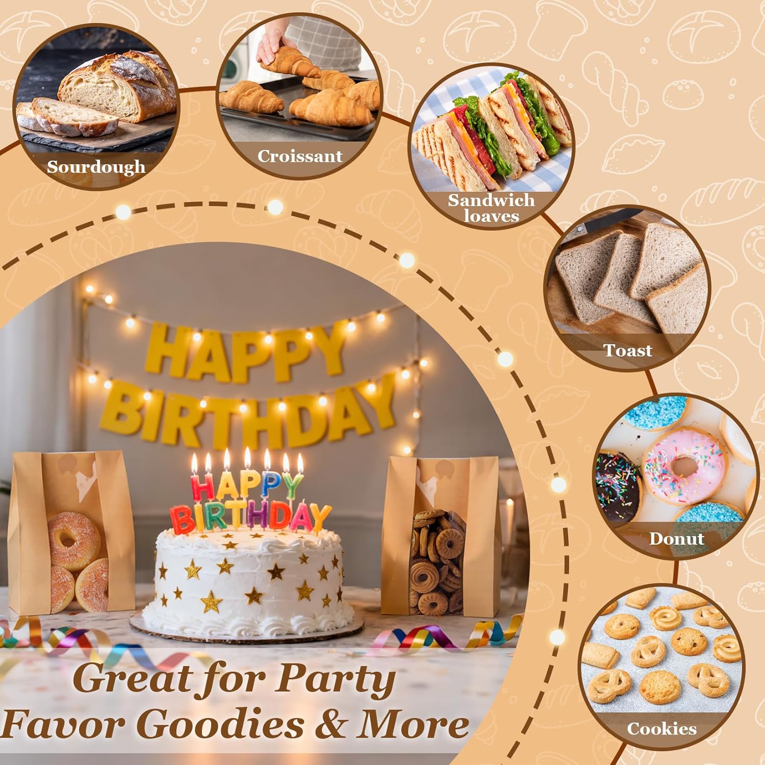 Party Favors & Goodie Bags – Not just for bread storage—these bread bags also good as party favor bags. Use them to package artisan rolls, cookies, or small loaves for weddings, birthdays, or holiday gatherings. The clear window lets guests see the treats inside, while the rustic look makes them an elegant option for party goodies or gift bags.