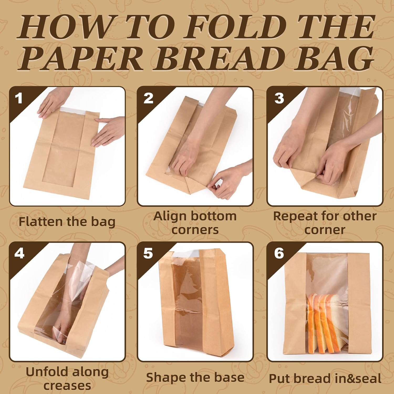Breathable Paper Bags Keep Bread Fresh & Crisp – These paper bread bags are designed with a grease-proof interior film to keep the bread outside crust crisp while maintaining moisture inside. Unlike plastic bags that make bread soggy, these breathable bags for bread keep loaves fresh for days, sometimes up to 1–2 weeks, ensuring every slice tastes as delicious as when it was first baked.