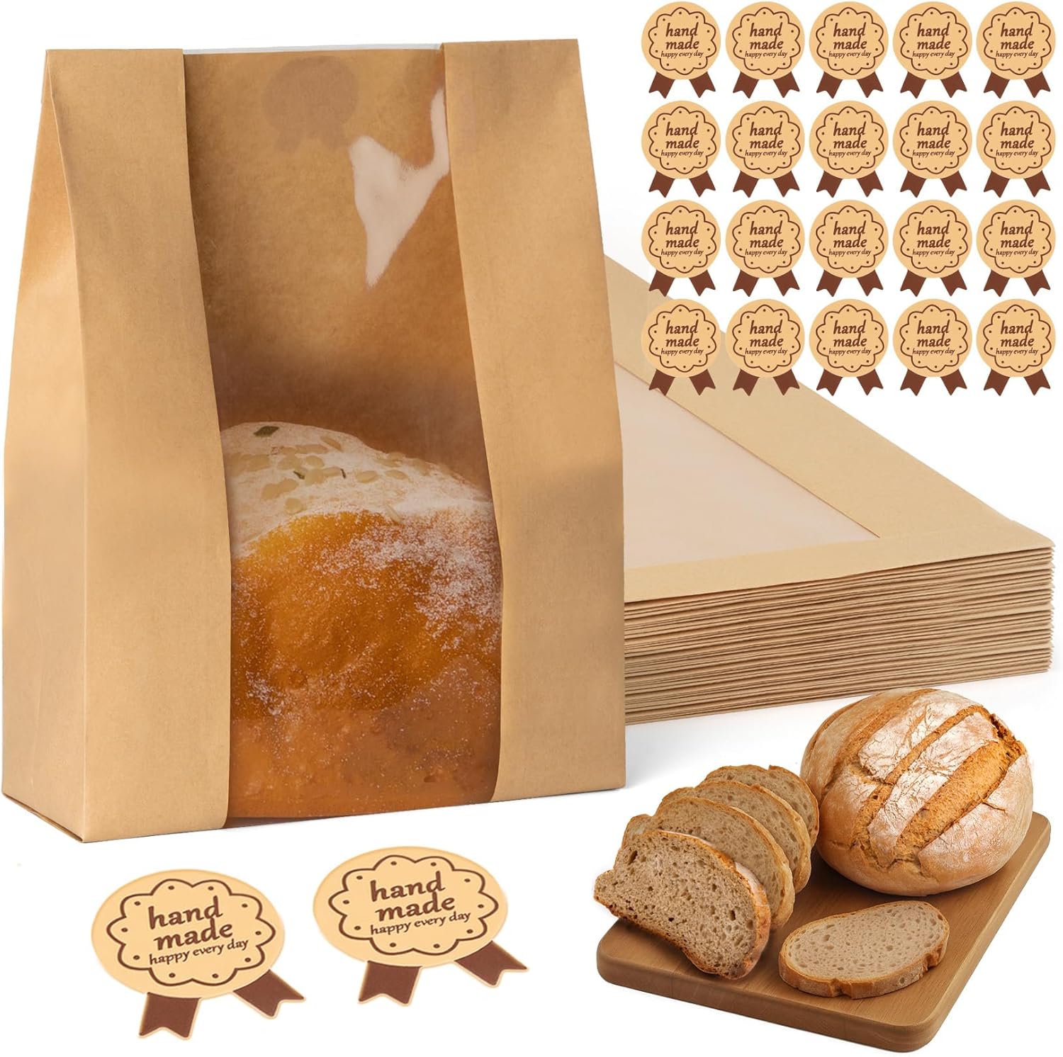 FUNFERY 30 Pcs Sourdough Bread Bags for Home Made Bread Sourdough,Large Paper Bags for Breads Gifting with Window & Cute Seal Stickers,Loaf Bags for Bakery Packaging and Storage(12.79″x8.26″x3.54″) | breathable material, cute sticker