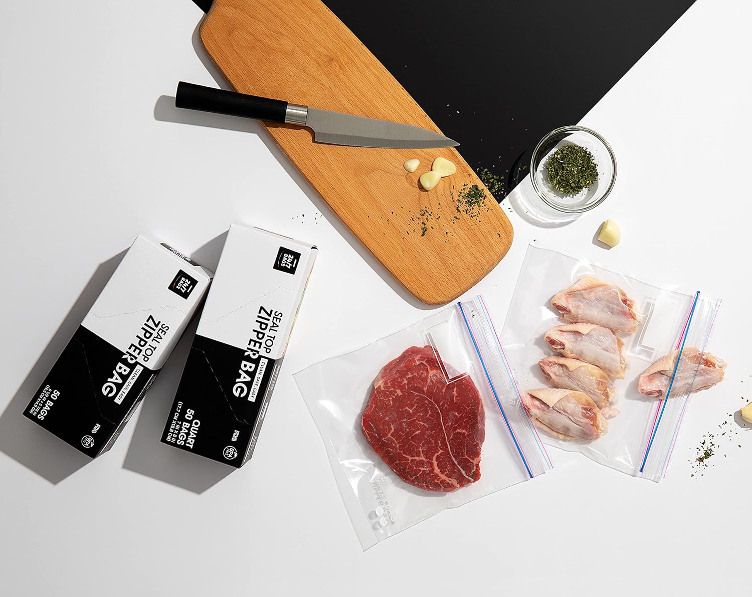 Gallon & Quart Food Storage Zip Bags Combo Pack, 100 Count Each, Total 200, Double Zipper, Easy Open