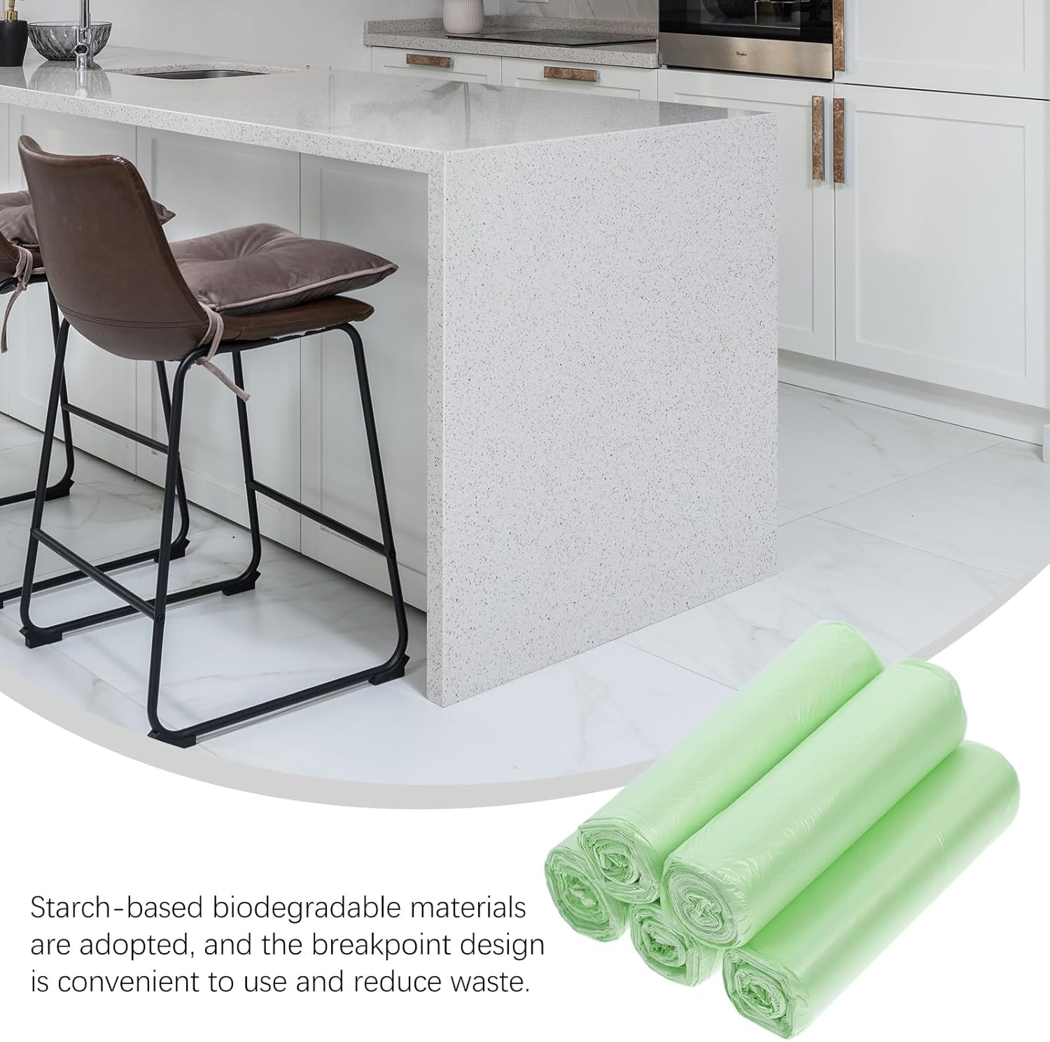 GARVALON Biodegradable Trash Bags 100pcs (5 Rolls) Starch-based 2.6 Gallon 45x50cm Plastic Bags for Kitchen Bathroom Office Waste Disposal
