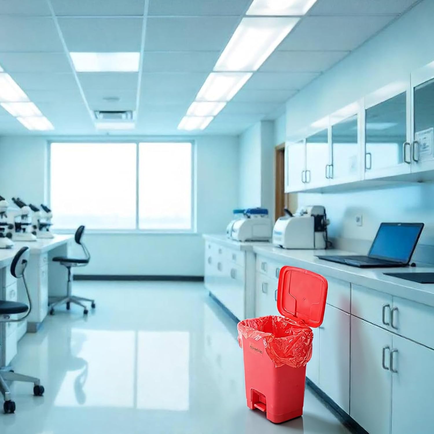 Convenient contactless operation: this red trash can is designed with practicality in mind, featuring a foot-operated lid that opens with each step and closes automatically with another, enabling contactless disposal of medical and hazardous waste. This enhances safety by minimizing contact, making it an ideal choice for biohazard waste containers