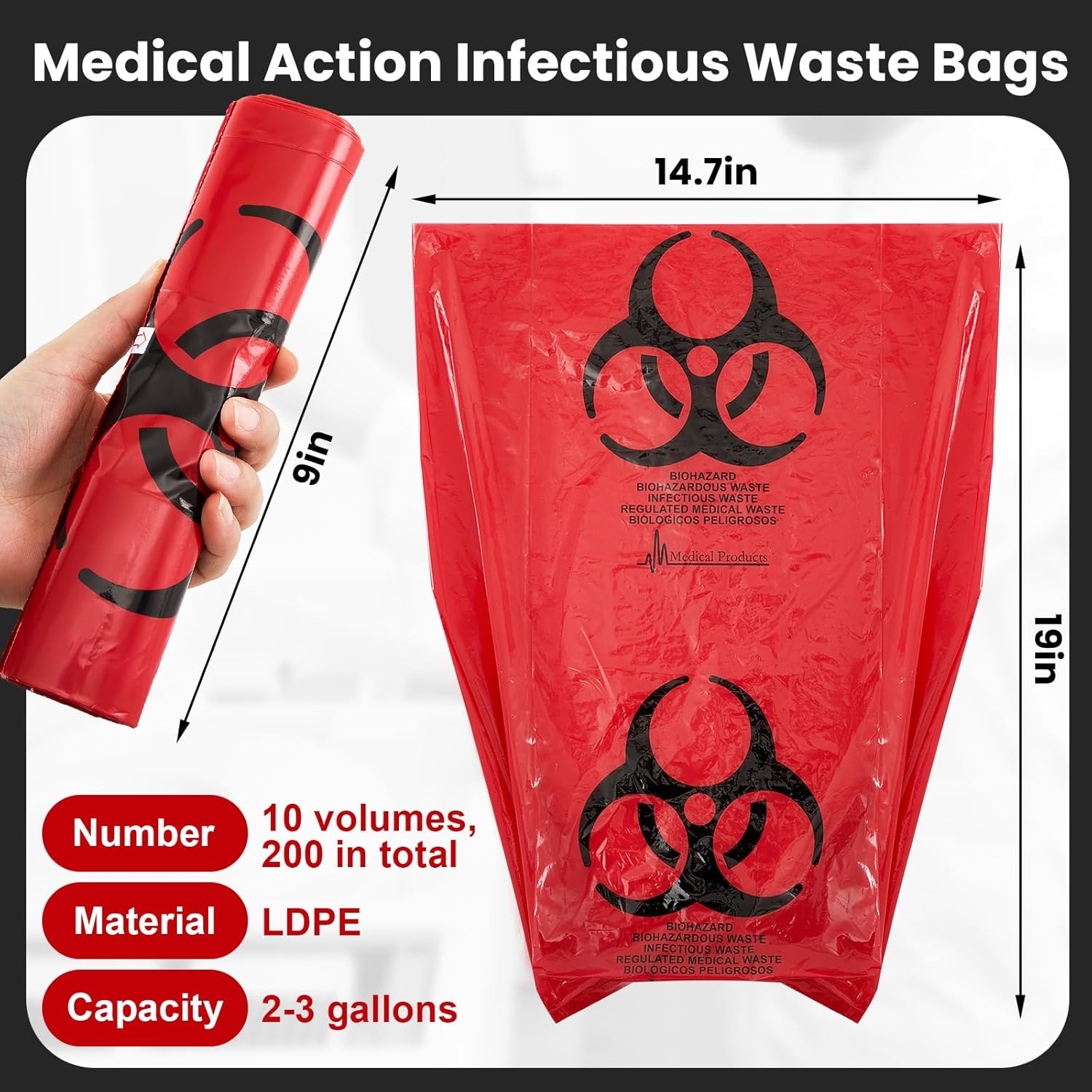 Ample Quantity: the package offers generous quantity supply with 10 rolls of biohazard bags, 20 pieces per roll, 200 biohazard waste bags in total; With this bulk supply, you can confidently manage your waste disposal needs for an extended period