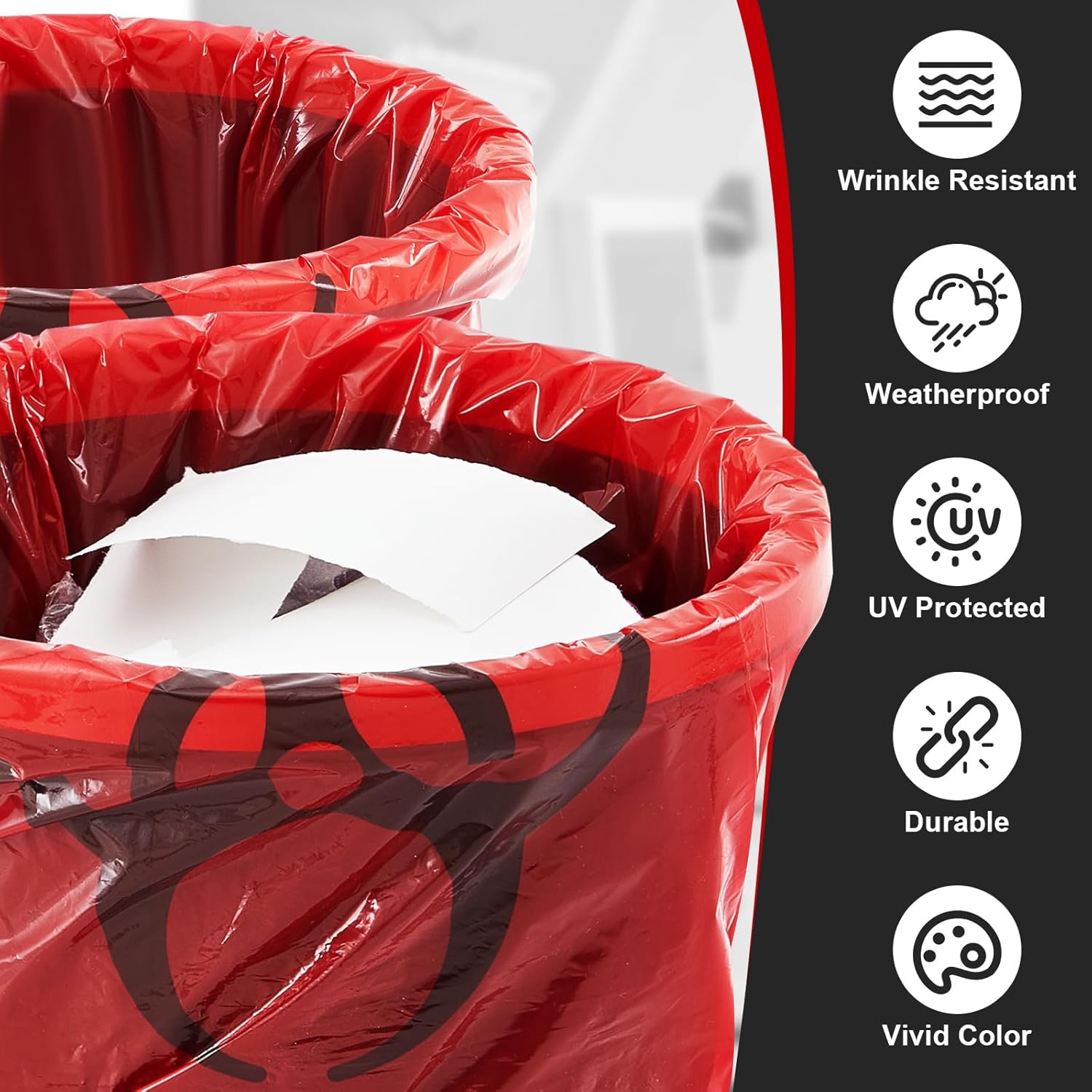 Vibrant Color for Safety: our infectious waste bag boats a vibrant red color, reminding the safety of handling and disposal of hazardous waste; The clear biohazard messages make them easily identifiable, providing heightened safety awareness and caution