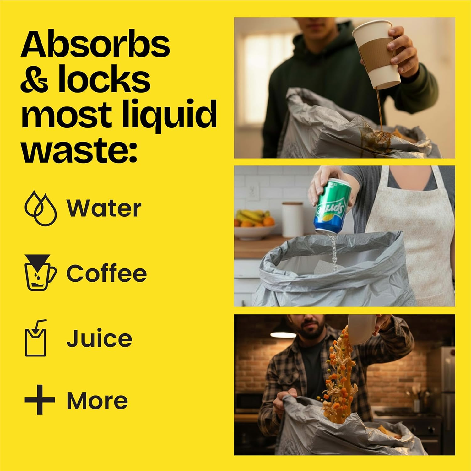 ABSORBS MOST LIQUID WASTE: Water, coffee, juice and more – the bag can absorb most liquids, making it a versatile essential for keeping your kitchen feeling clean