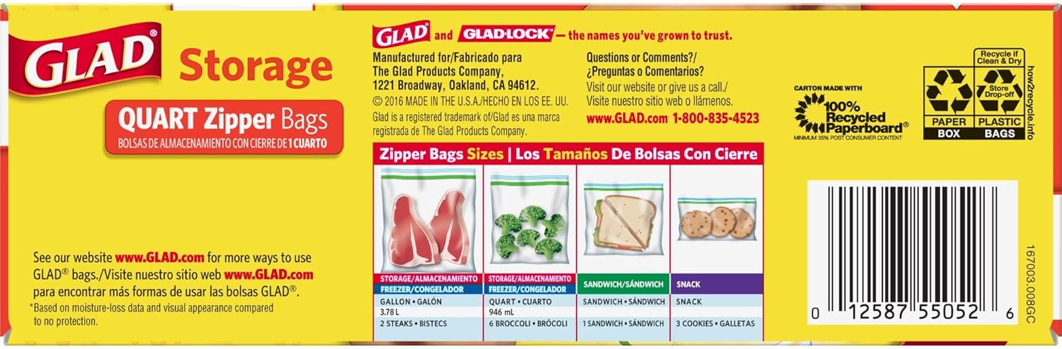 QUART PLASTIC STORAGE BAGS: Glad quart storage zipper bags are BPA free, have a zipper closure and provide solutions for a variety of different storage needs