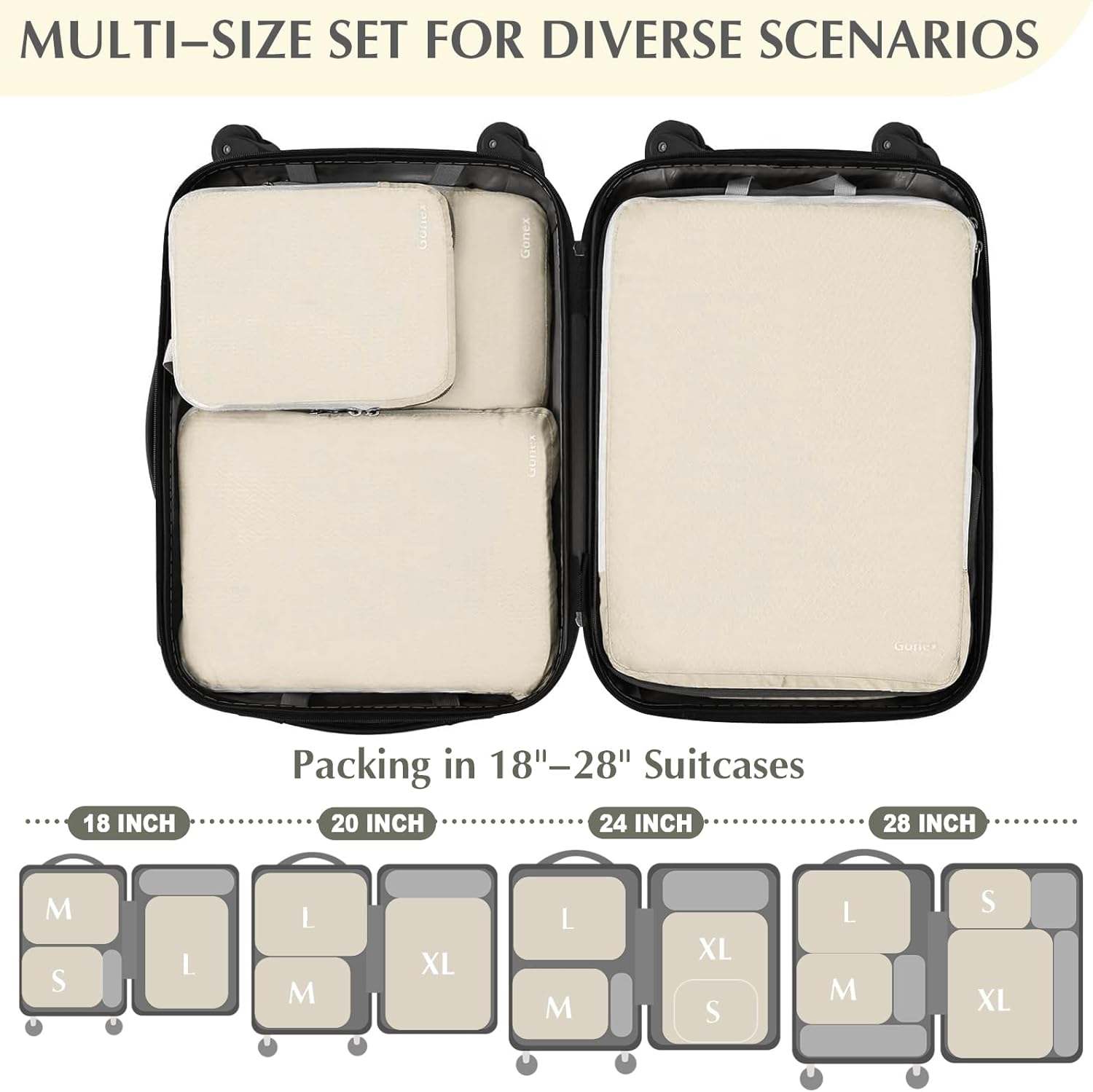 Gonex Compression Packing Cubes, 4pcs Expandable Storage Travel Luggage Bags Organizers (Cream)