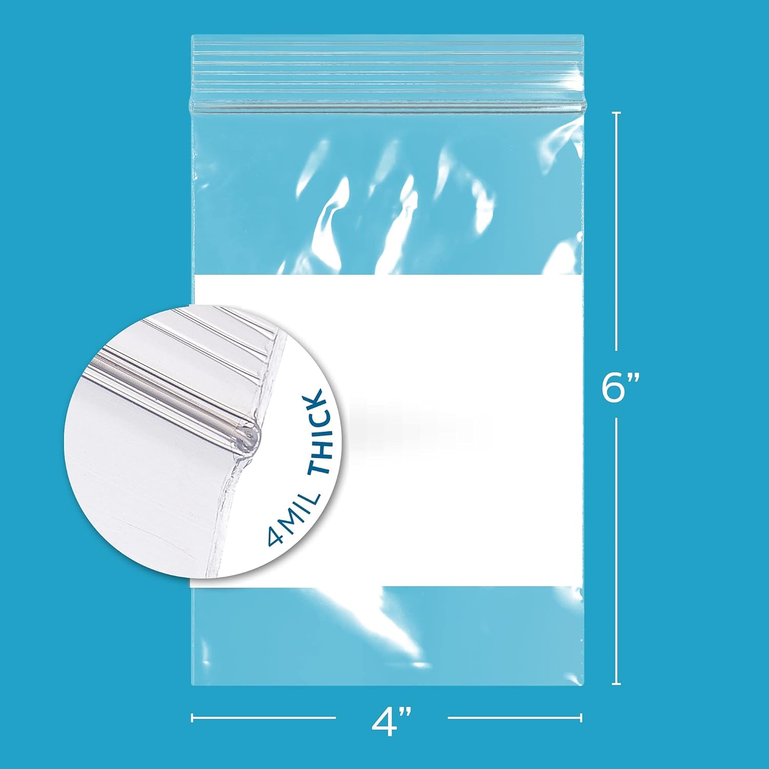 GPI – 4″ x 6″ – Bulk Pack of 100, 4 Mil Thick, Heavy Duty, Clear Plastic Reclosable Zip Bags, With Write-on White Block for Labeling, Strong & Durable Poly Baggies With Resealable Zipper Top Lock.
