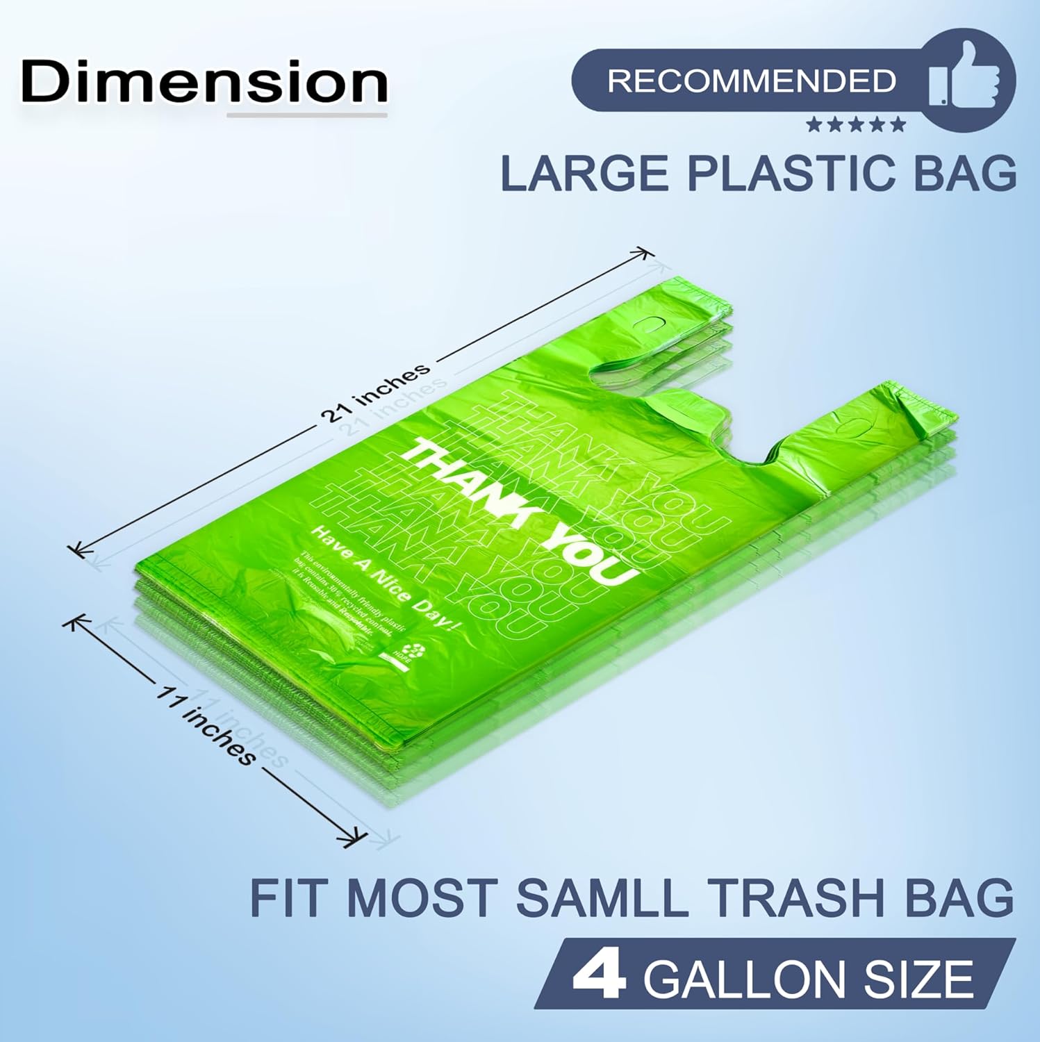 Green Thank you bags, 1000PCS T shirt bags, To Go Bags,Grocery bags, Reusable and Disposable,Perfect for Small Business,Take Out,Retail, Large