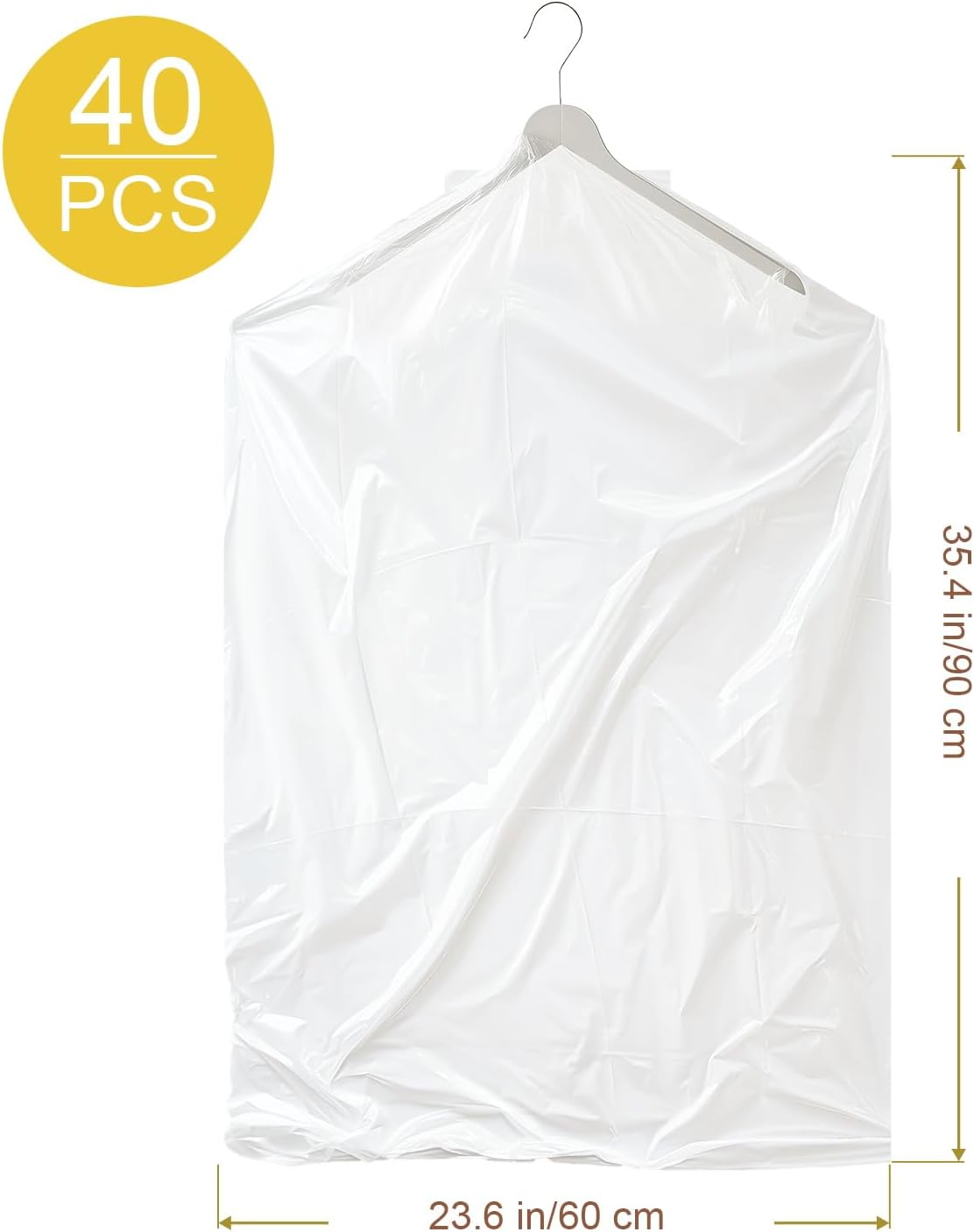 Gretchin 40 Pack Garment Bags – Set of 40, 60x90cm Plastic Dry Cleaning Bags for Hanging Clothes Storage