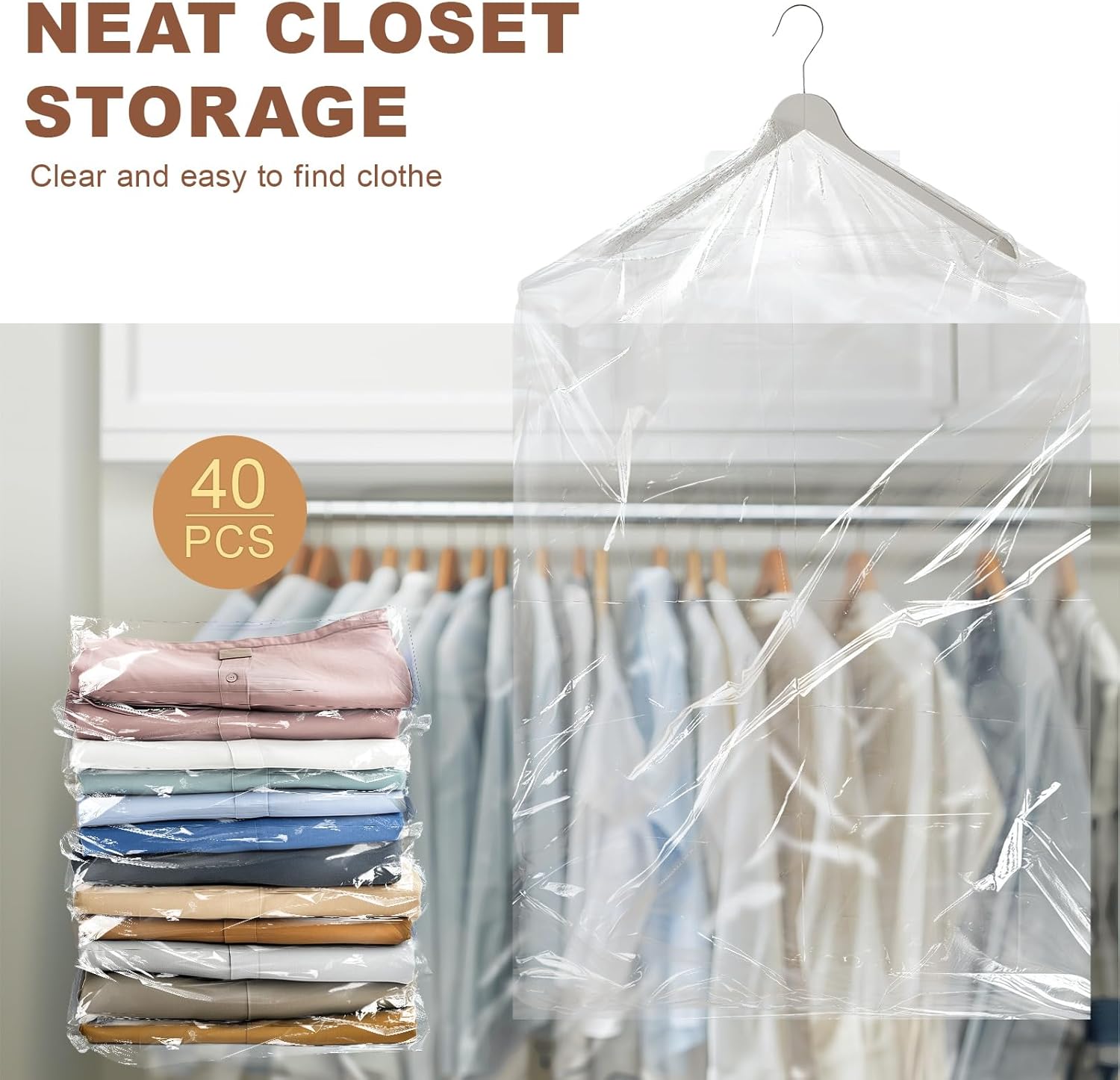 CLOSET STORAGE – This pack includes 40 clear garment bags, measuring 60x90cm / 23.6×35.4 inch, Enhance the overall organization and tidiness of your wardrobe.