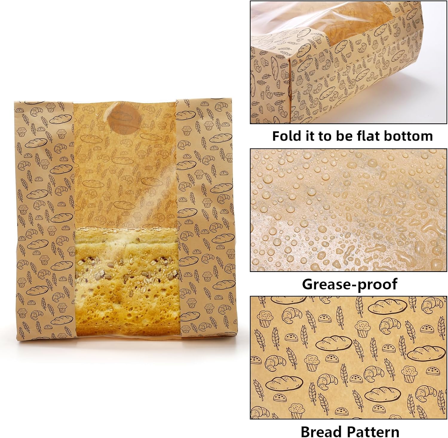 Multi-use: These paper bags with window are not only great for bread or toast, but for cookie, candy, treats, sandwich, donut, etc.