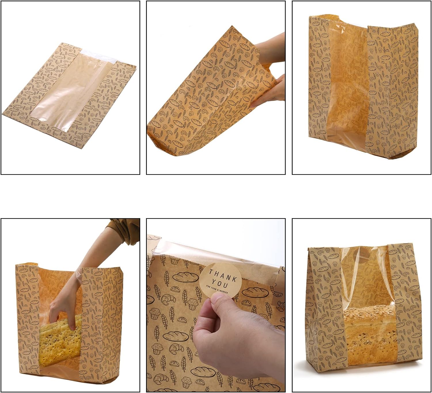 Stickers Included: Hacaroa 100 pack paper bread bags measure 10.8″H x 10″L x4″W. They come with 100 Pcs “Thank You” stickers for sealing and decorating the bakery bags.