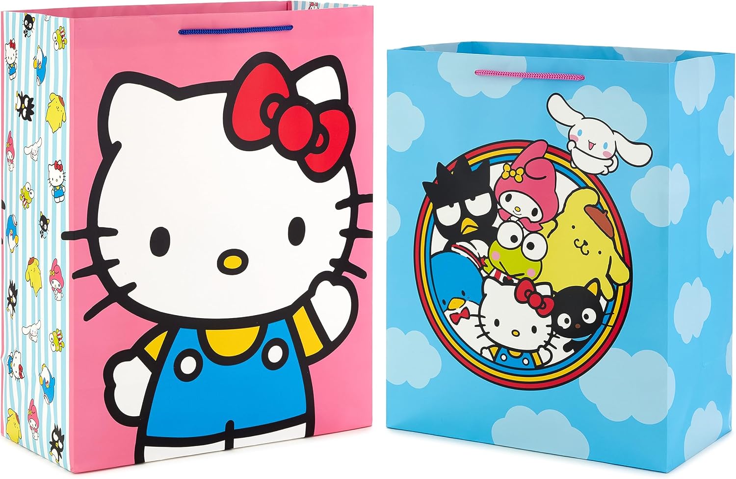 Celebrate friends and loved ones with a pair of cute Hello Kitty gift bags. Featuring Hello Kitty and friends, this set of pink and blue gift bags is great for giving toys, books or clothing to kids, granddaughters, sisters, teachers, coworkers and fans of Sanrio characters. Perfect for birthdays, back to school, Halloween, baby showers and other special occasions. The Hallmark brand is widely recognized as the very best for greeting cards, gift wrap, and more. For more than 100 years, Hallmark has been helping its customers make everyday moments more beautiful and celebrations more joyful.