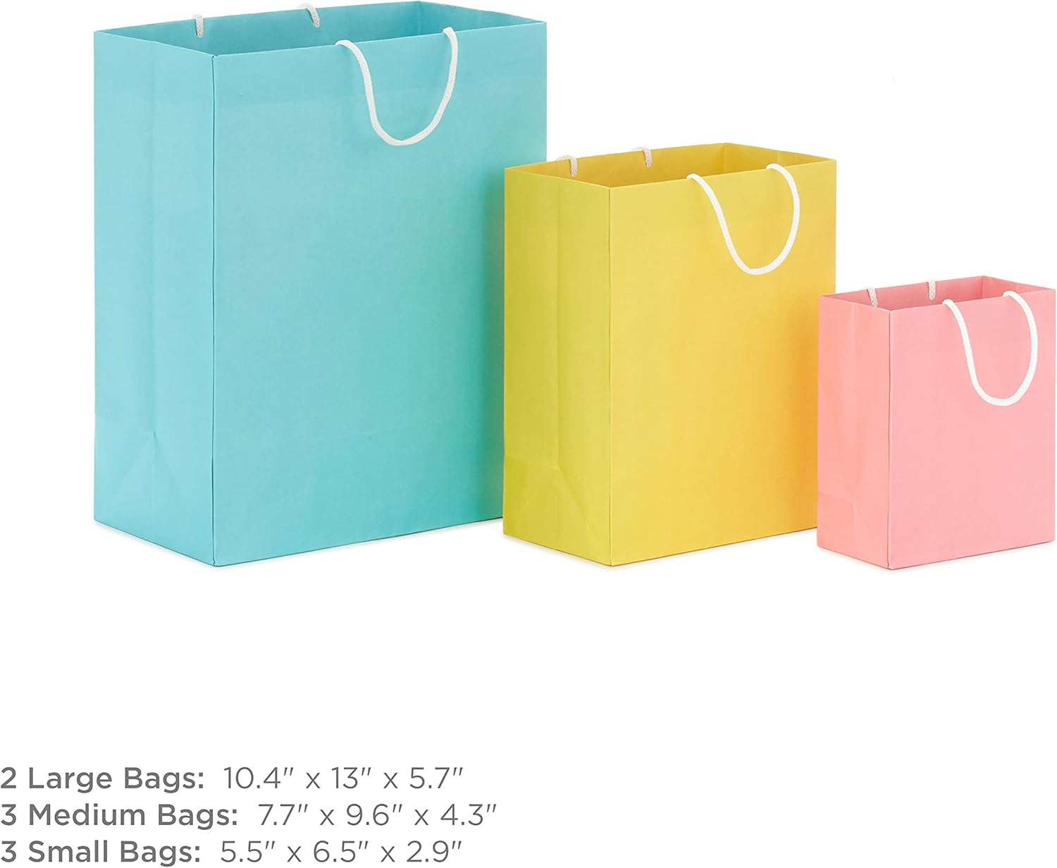 Care for the environment while you care for your people with recyclable gift bags! Featuring solid pastel colors in pink, blue, yellow, orange, purple and green, this gift bag bundle is perfect for birthdays, baby showers, bridal party gifts, Easter and more. Simply remove handles to recycle gift bags. Purchase includes 8 bags in 3 sizes, great for wrapping a variety of presents, from gift cards and books to clothing and electronics. The Hallmark brand is widely recognized as the very best for greeting cards, gift wrap, and more. For more than 100 years, Hallmark has been helping its customers make everyday moments more beautiful and celebrations more joyful.