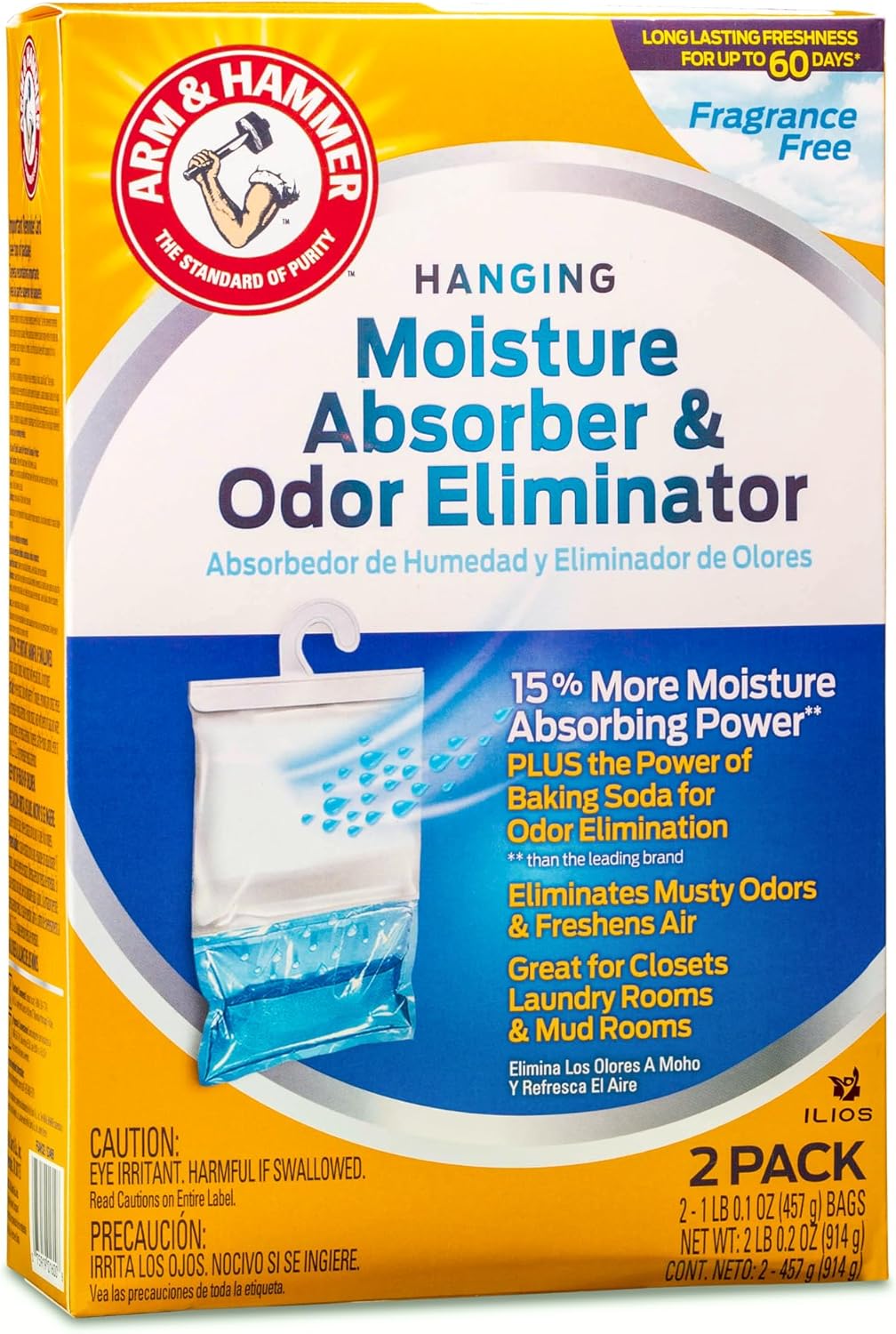 Hammer Hanging Moisture Absorbers and Odor Eliminator – 1 Fragrance Free & 1 Clean Burst – Humidity Packs Traps Moisture – Fresher Air – Humidity Absorber Dehumidifier Bags – 2 Pack, Packed by ILIOS