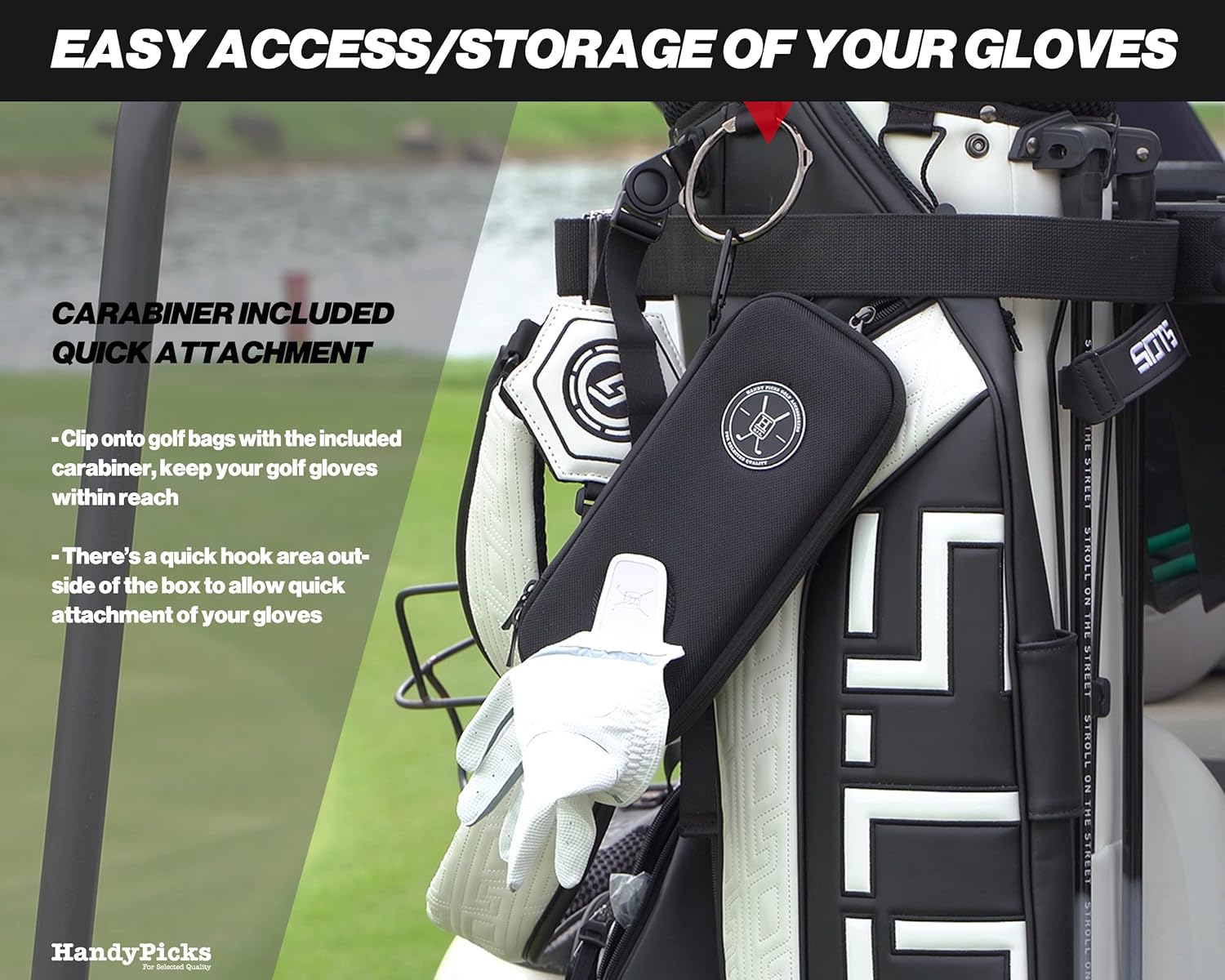 Store Your Gloves: this case is capable of storing up to three gloves at the same time in case if you would like to switch gloves during a round. No more fumbling in the golf bag to find your golf gloves. The outer hook area let one glove stay out for easy access.