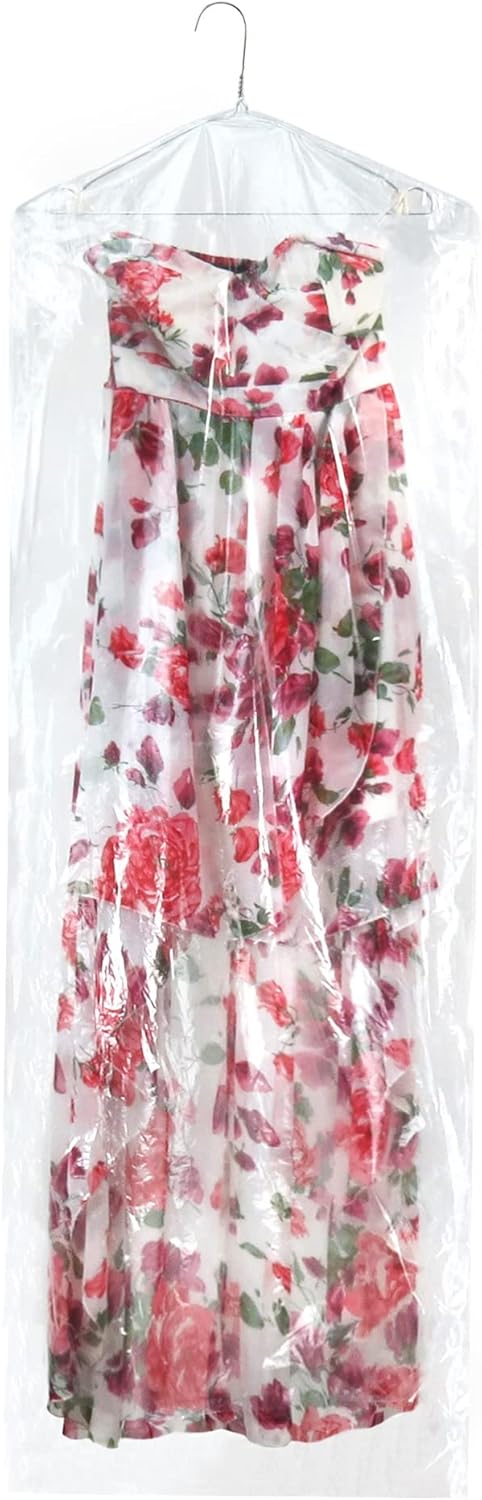 These clear plastic bags for clothing are perfect for storing dresses, coats and pants. They protect clothing from dust and repel unwanted visitors that could damage your hanging storage. Transparency of the clothes bag means you can easily find the outfit your want to wear.