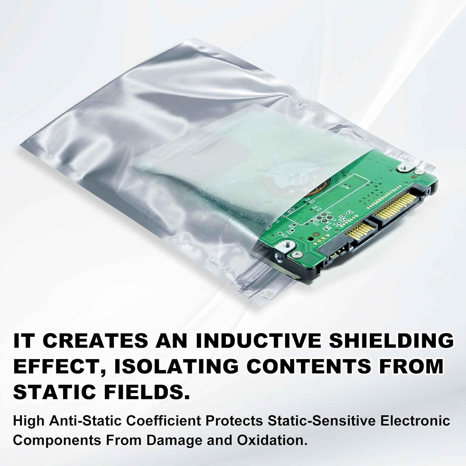 Application – These anti-static bags are suitable for packaging a variety of electronic components, including sensitive electronic components like GPU, hard drives, I/O memory cards, RAM, HDD and SSD, as well as for storing electronic products like LED light bars, headphones and data cables. They can be used for storage, display, or gifting.