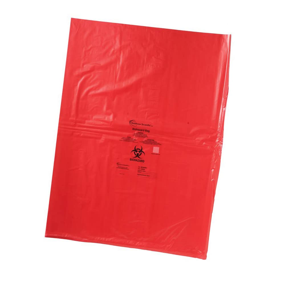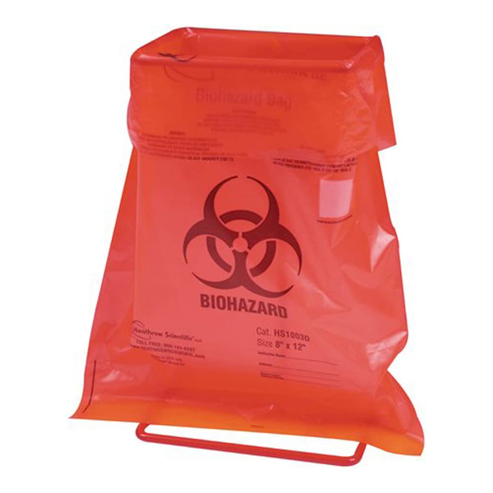 Heathrow Scientific HS10320 Biohazard Disposable Bag, 8″ x 12″, Red