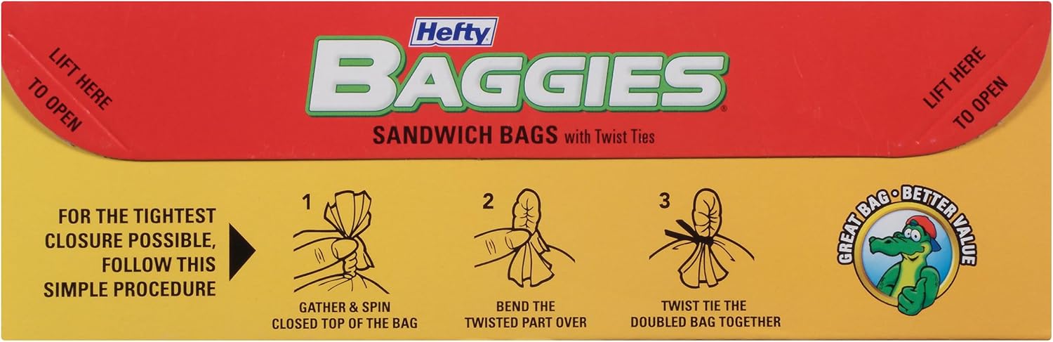 Hefty Baggies Food Storage Bags, Sandwich, Twist Tie, 150 Count