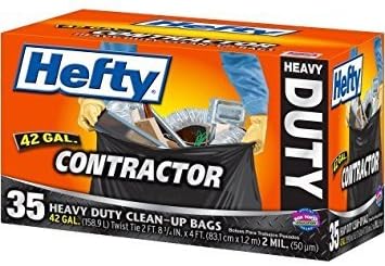 Hefty Contractor bags holds up to 42 gallons and comes in a 35-count box