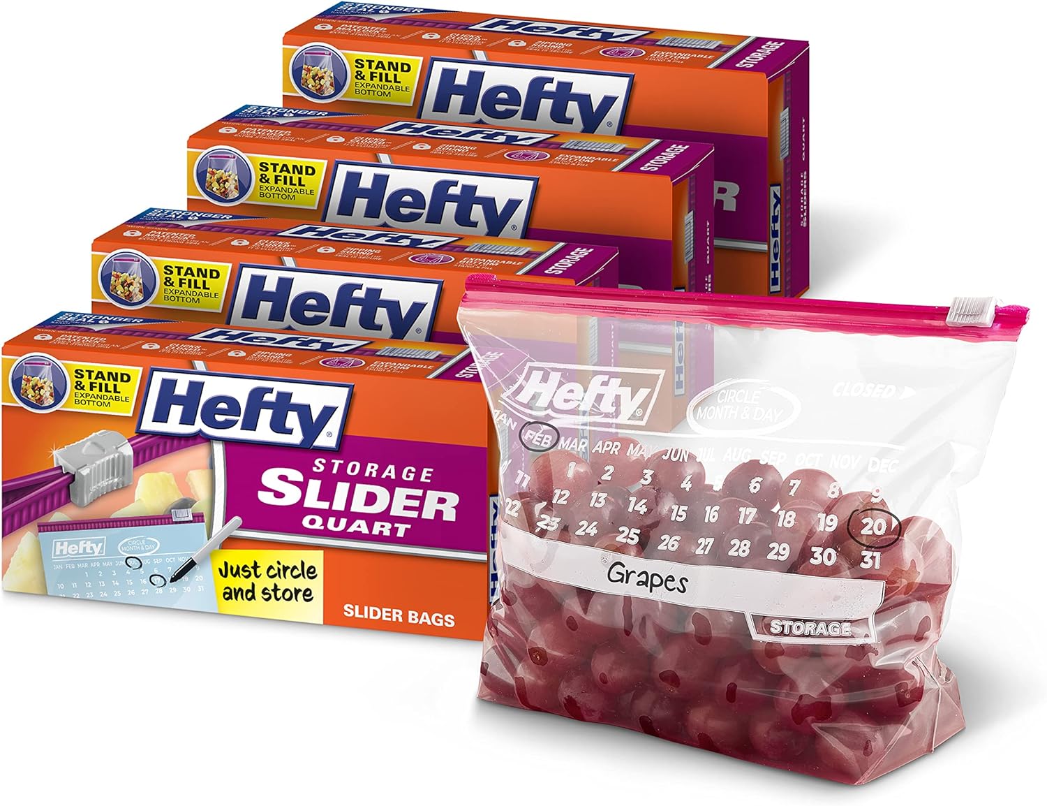 Hefty Slider Calendar Storage Bags, Quart Size, 40 Count (Pack of 4), 160 Total