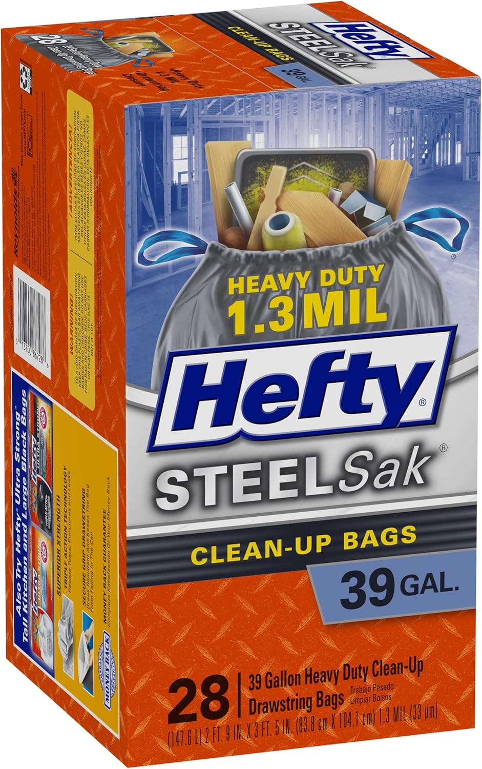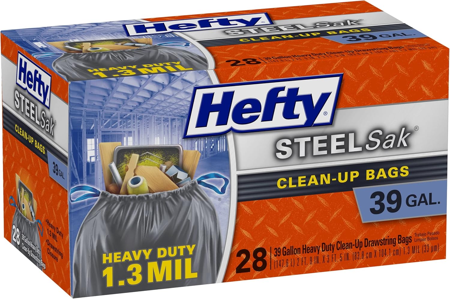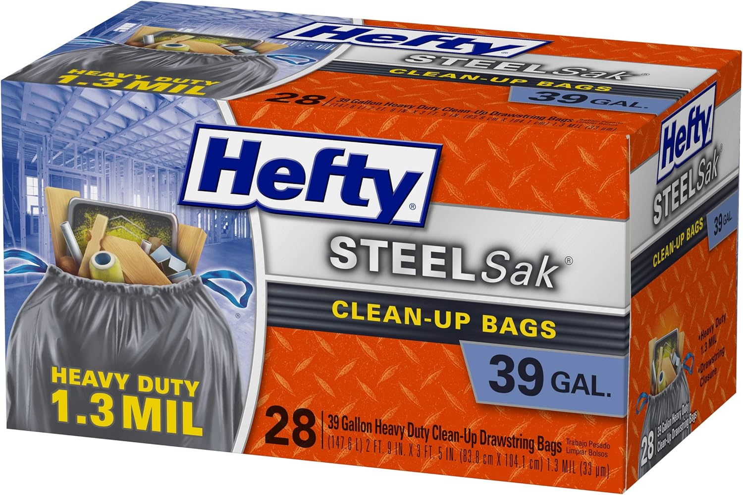 Hefty SteelSak Heavy Duty Large Clean-Up Trash Bags, 39 Gallon, 28 Count