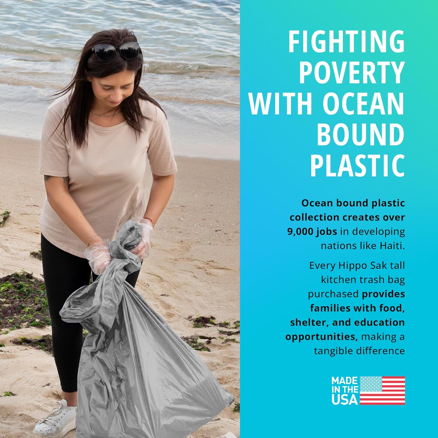Hippo Sak Tall Kitchen Trash Bags with Handles Made from Ocean Plastic